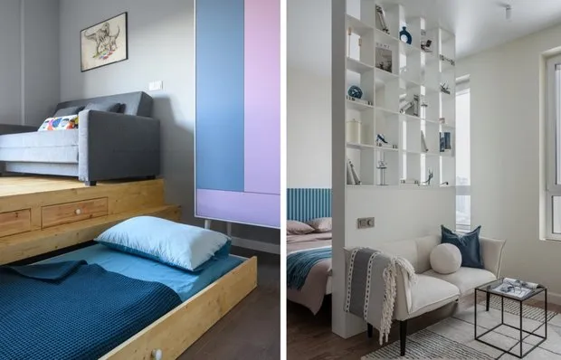 Dónde colocar la cama en una pequeña estudio: 5 mejores soluciones