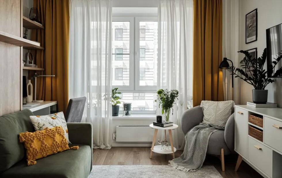 La diseñadora Anna Maltseva decoró un apartamento de una habitación para una joven trabajadora en empresa tecnológica. El interior debe servir como zona de descanso y relajación tras un día laboral intenso. Considerando que trabaja mucho, al volver a casa desea sentir una atmósfera acogedora con luz tenue y texturas naturales agradables.