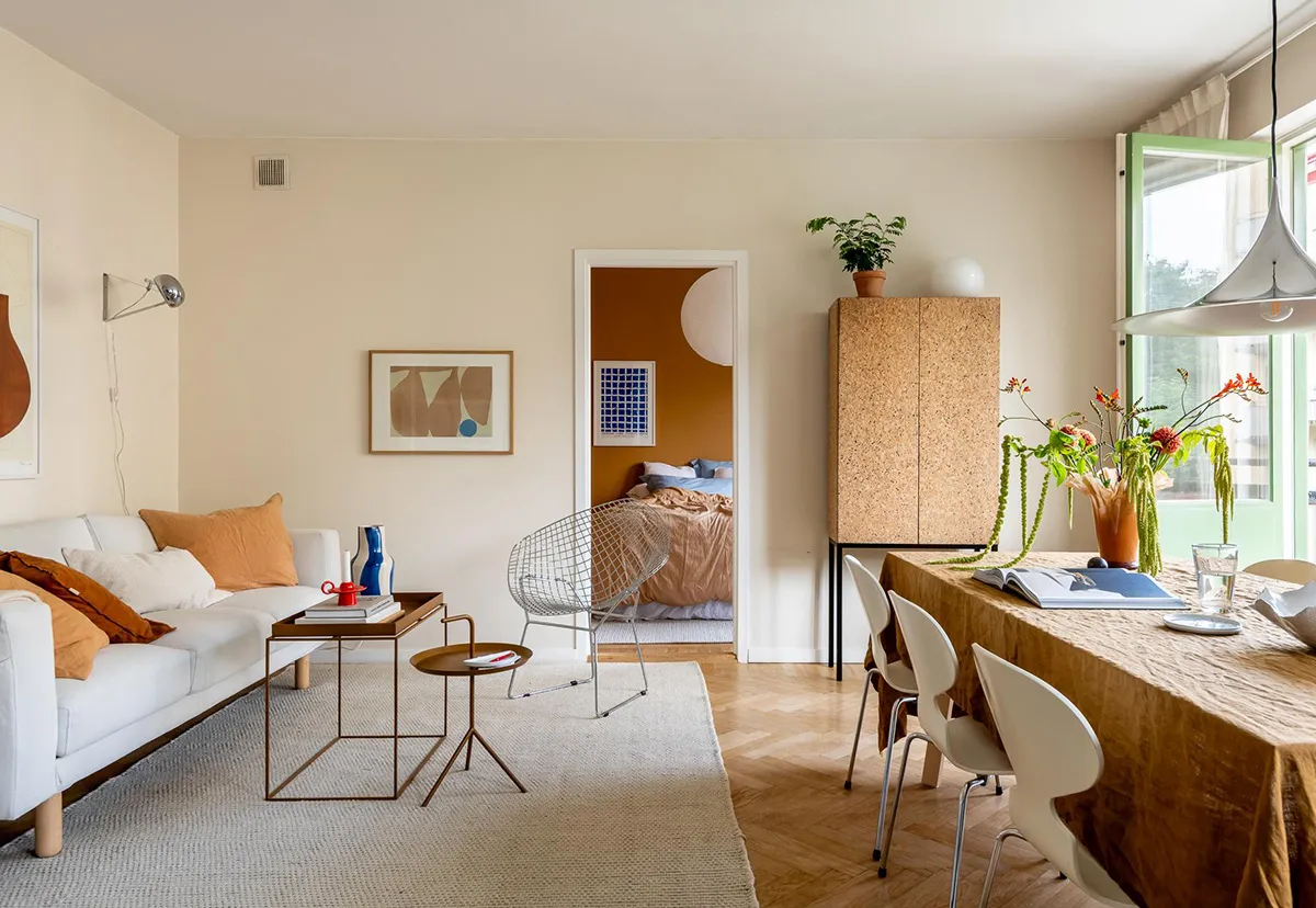 Acentes cálidos de terracota y otros en el diseño de un apartamento pequeño (49 m²)