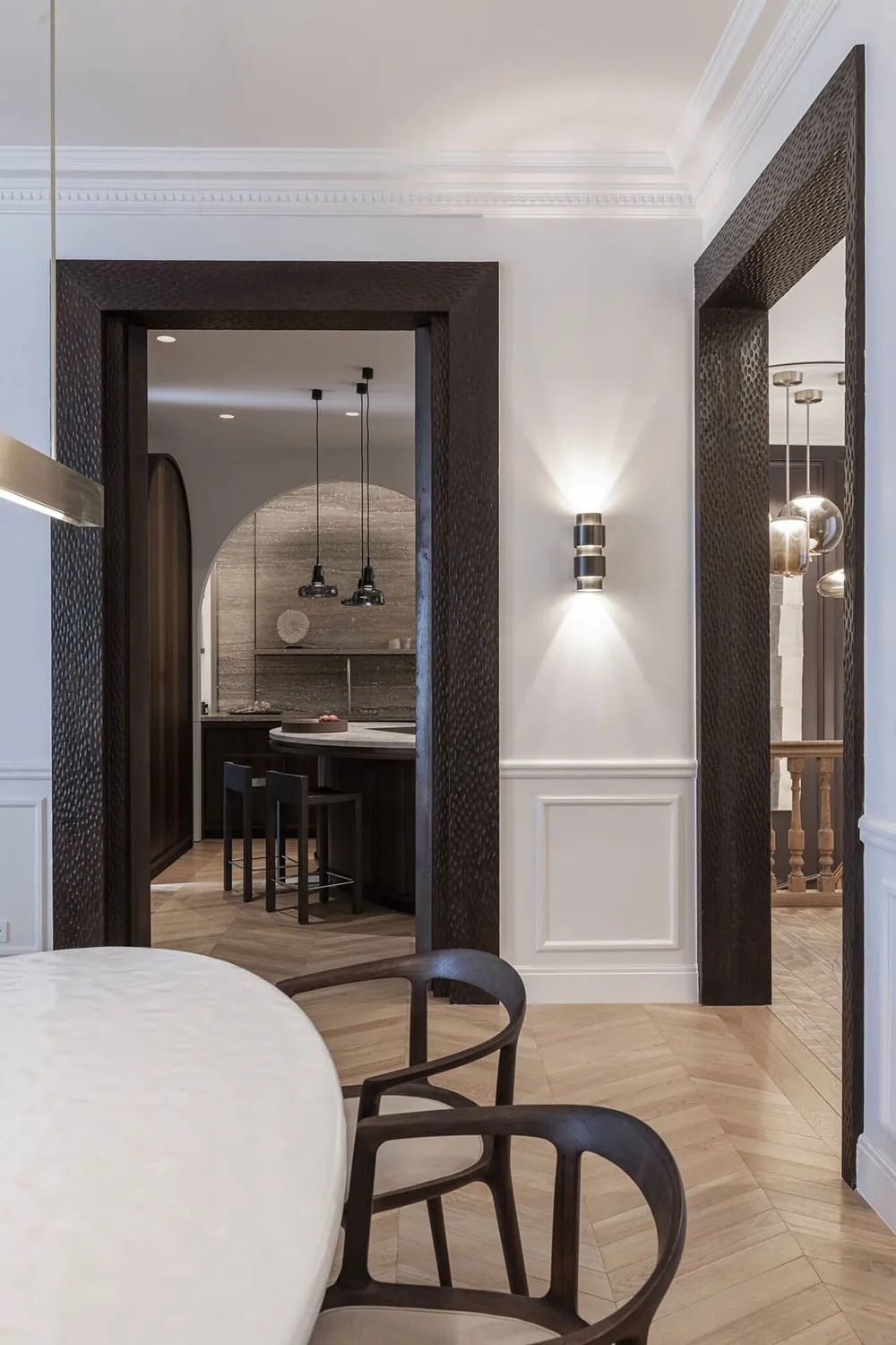 El diseñador Alexandra Boussagol transformó una antigua apartamento en París en elegantes y luminosos apartamentos modernos para un coleccionista de arte.