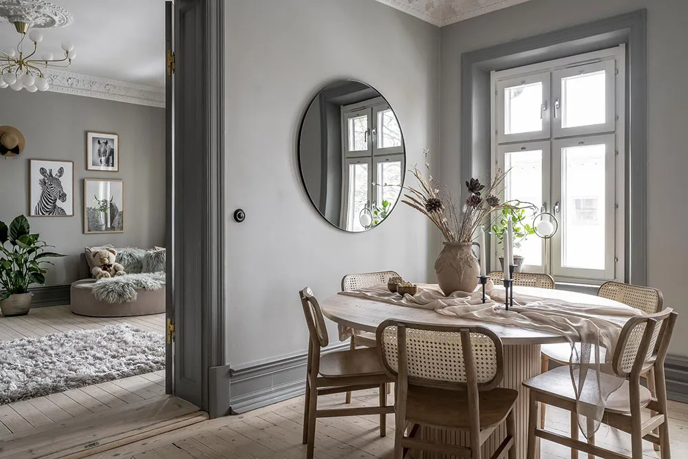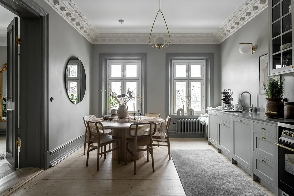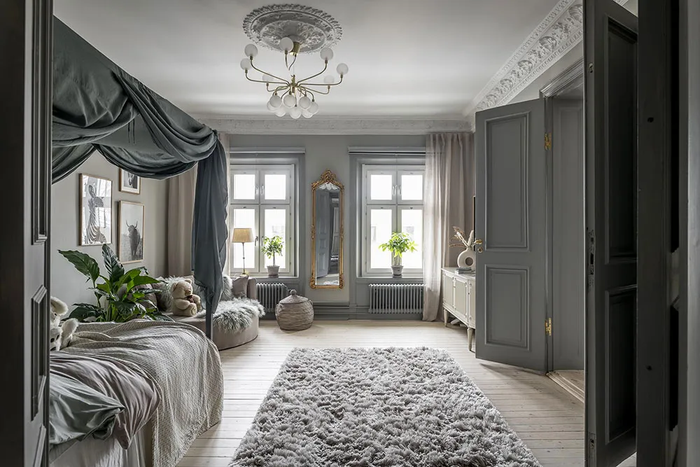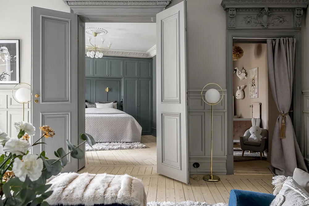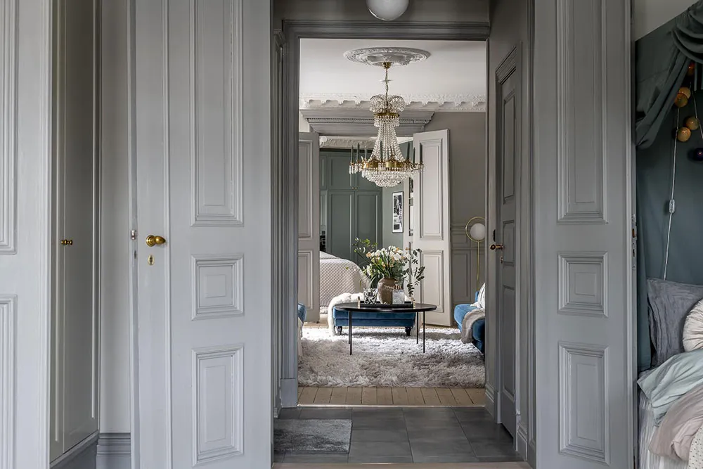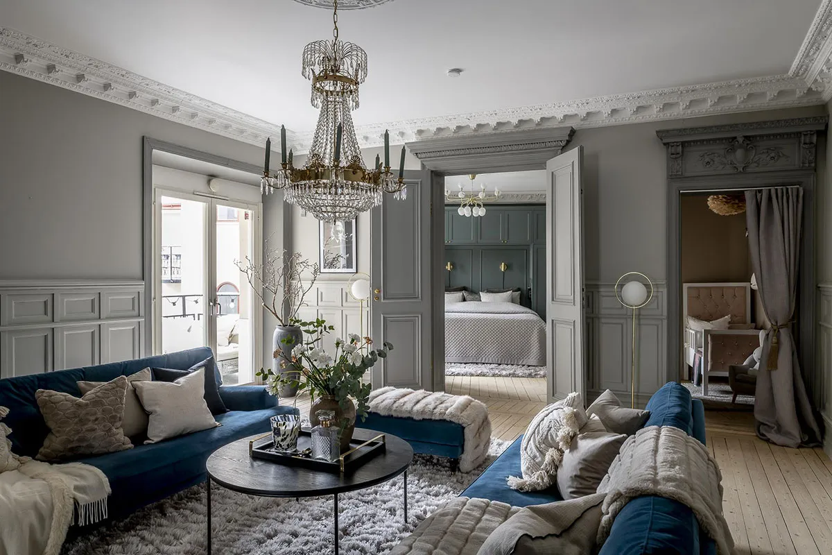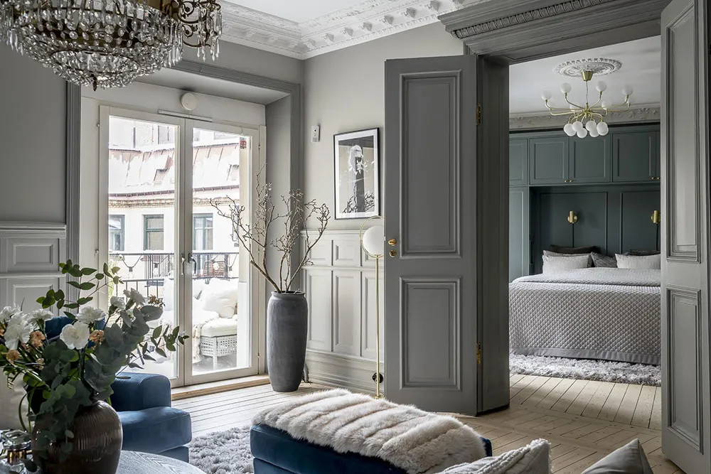 Belleza del decorado mural clásico en el diseño de un apartamento escandinavo