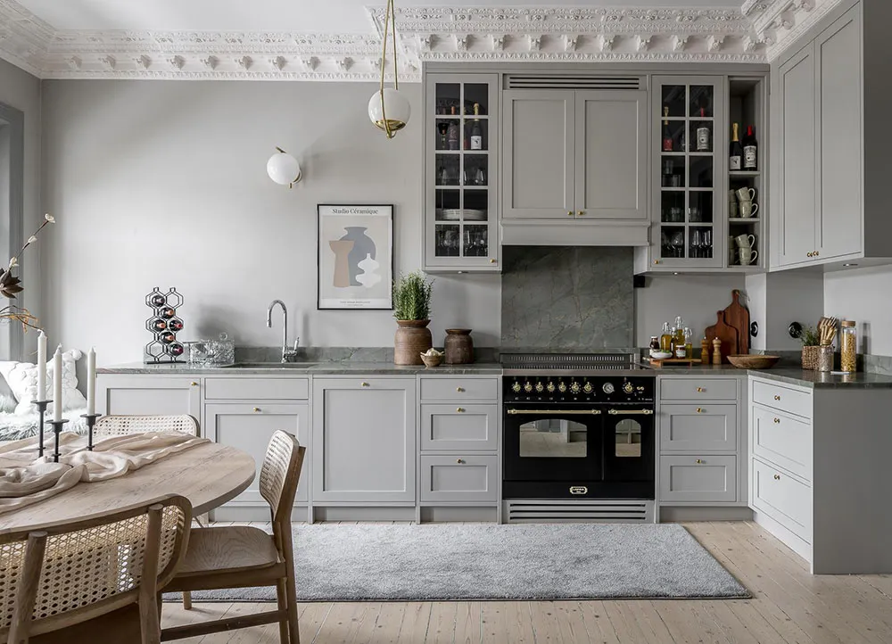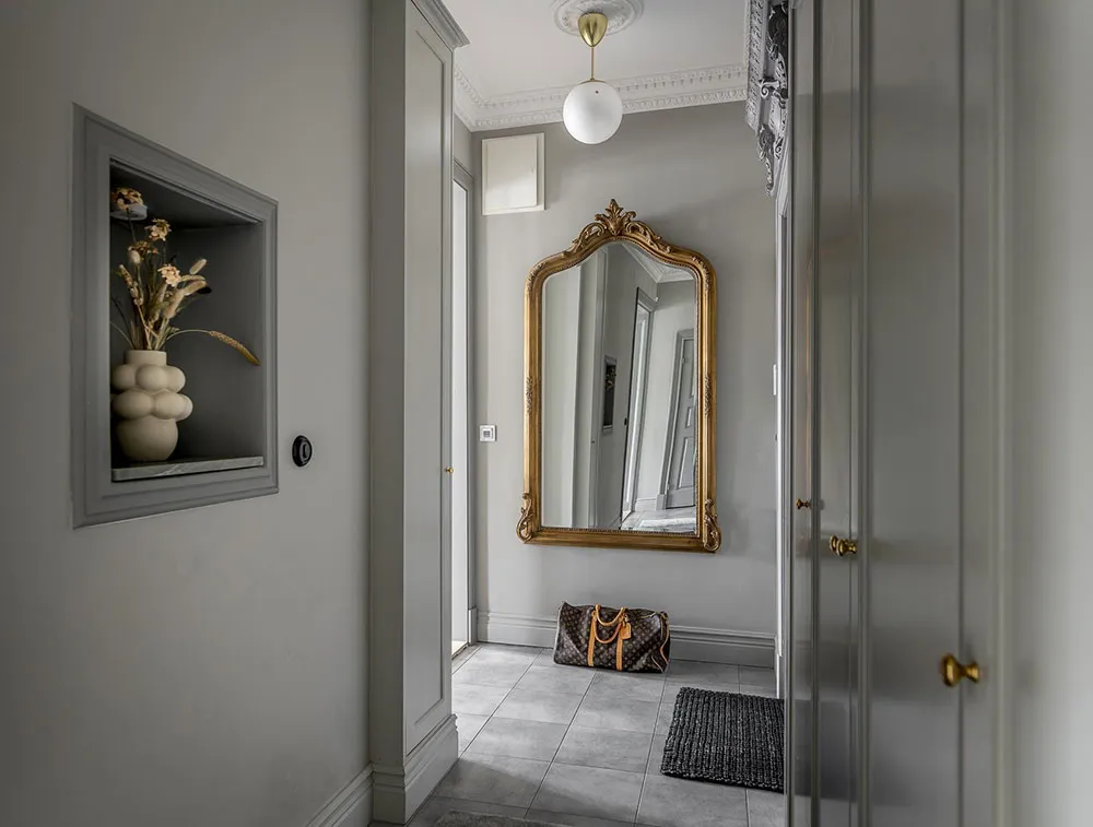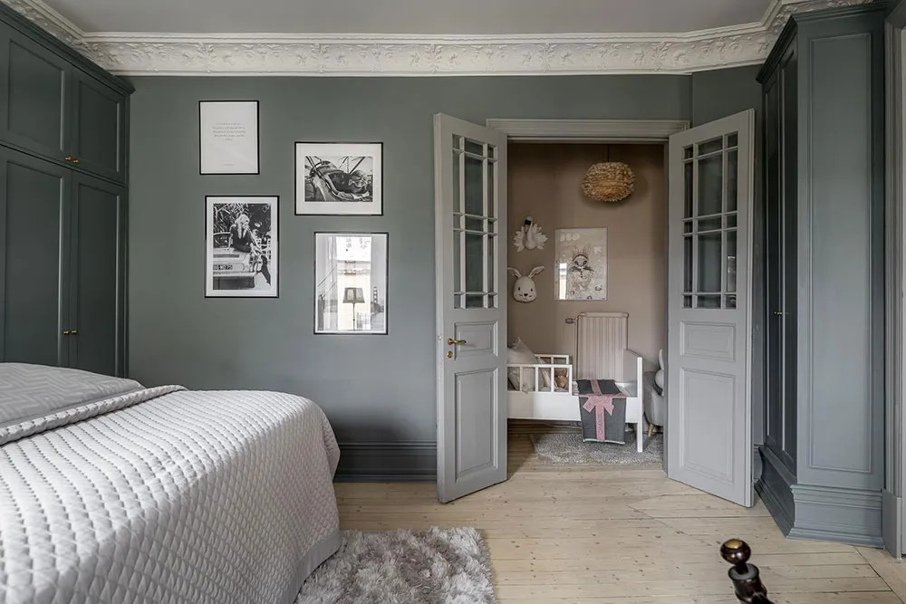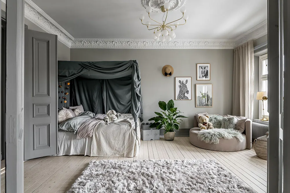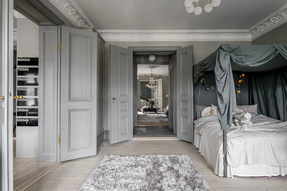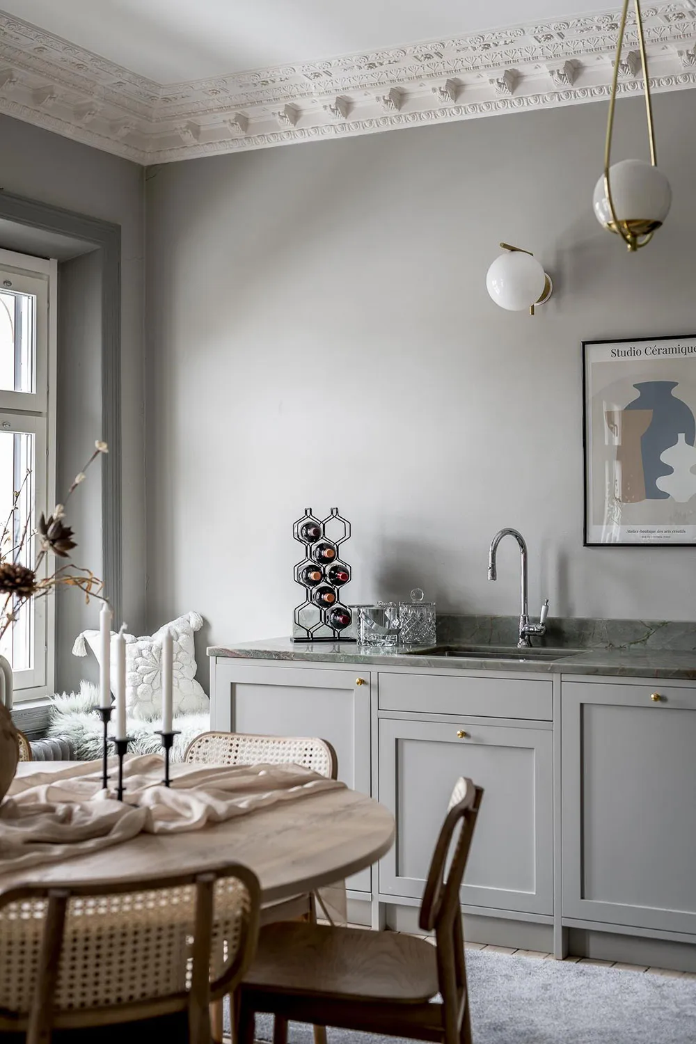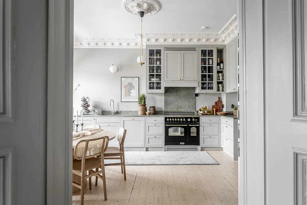 Belleza del decorado mural clásico en el diseño de un apartamento escandinavo