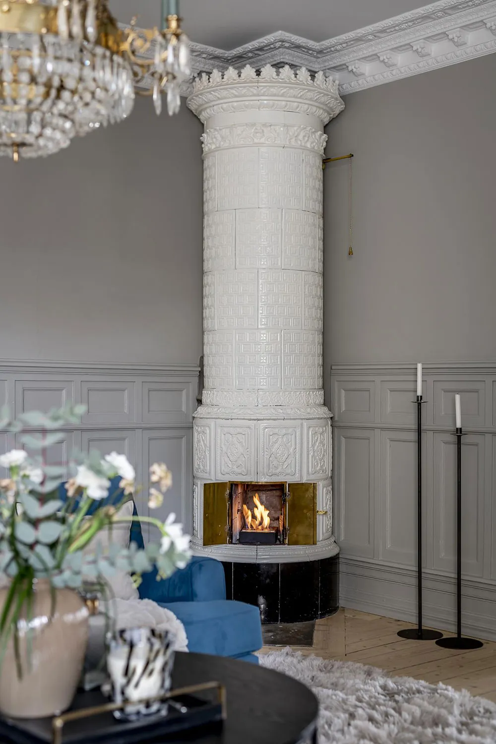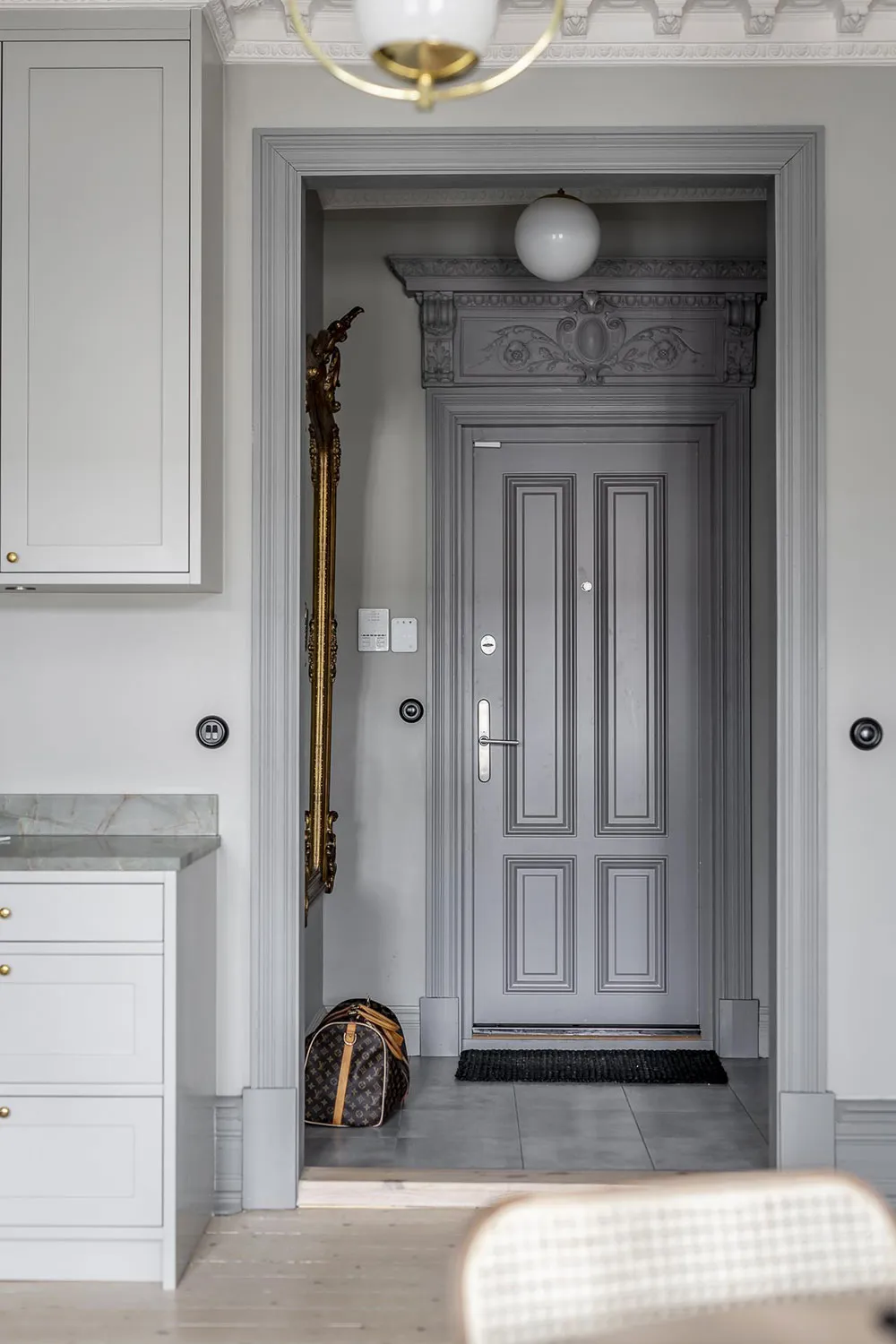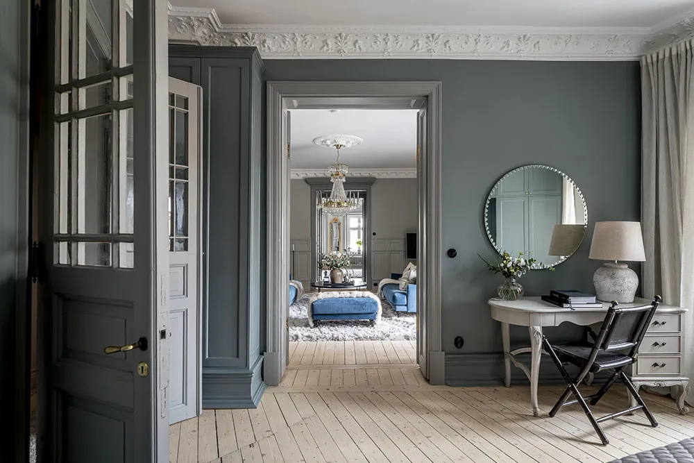 Cada habitación de esta casa sueca puede presumir de un rico decorado mural en estilo clásico.
