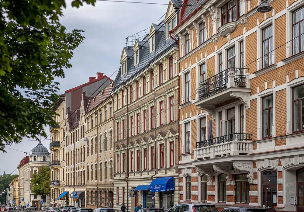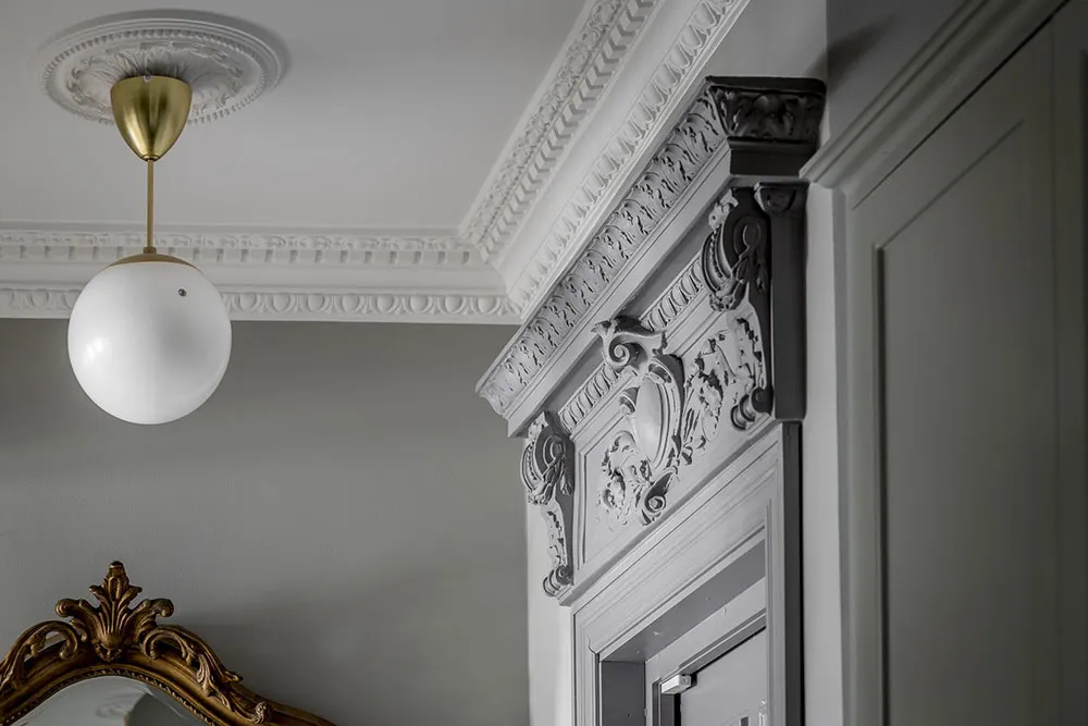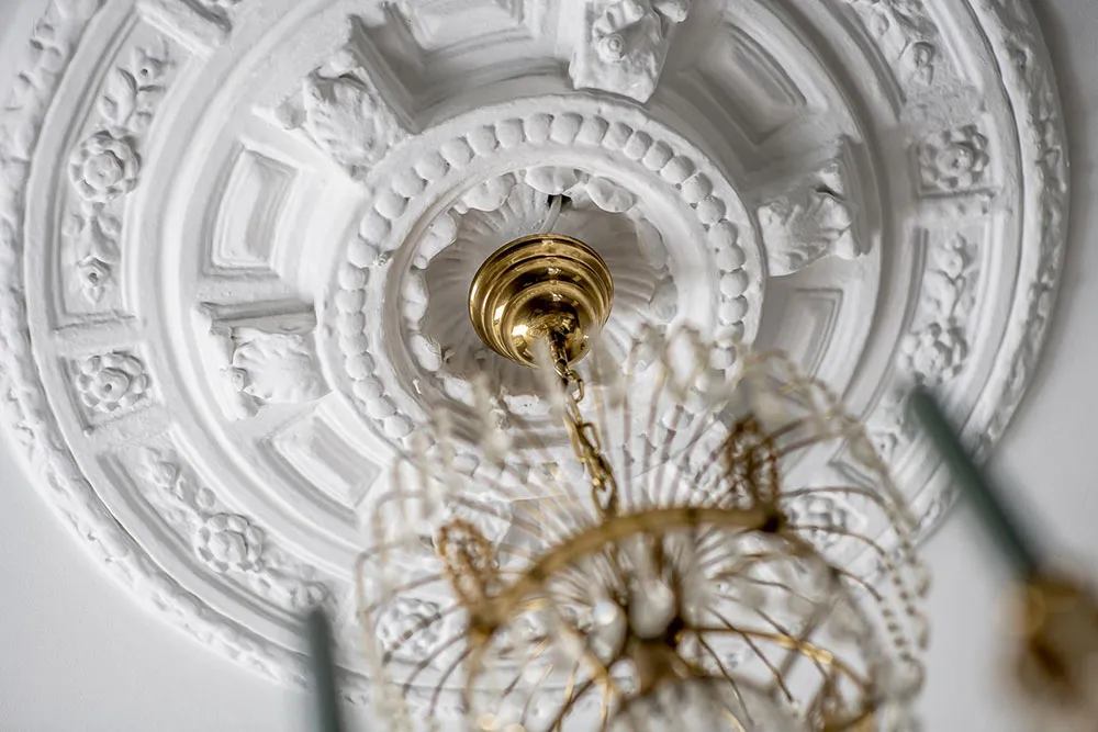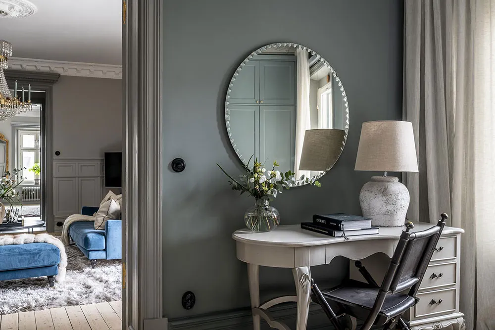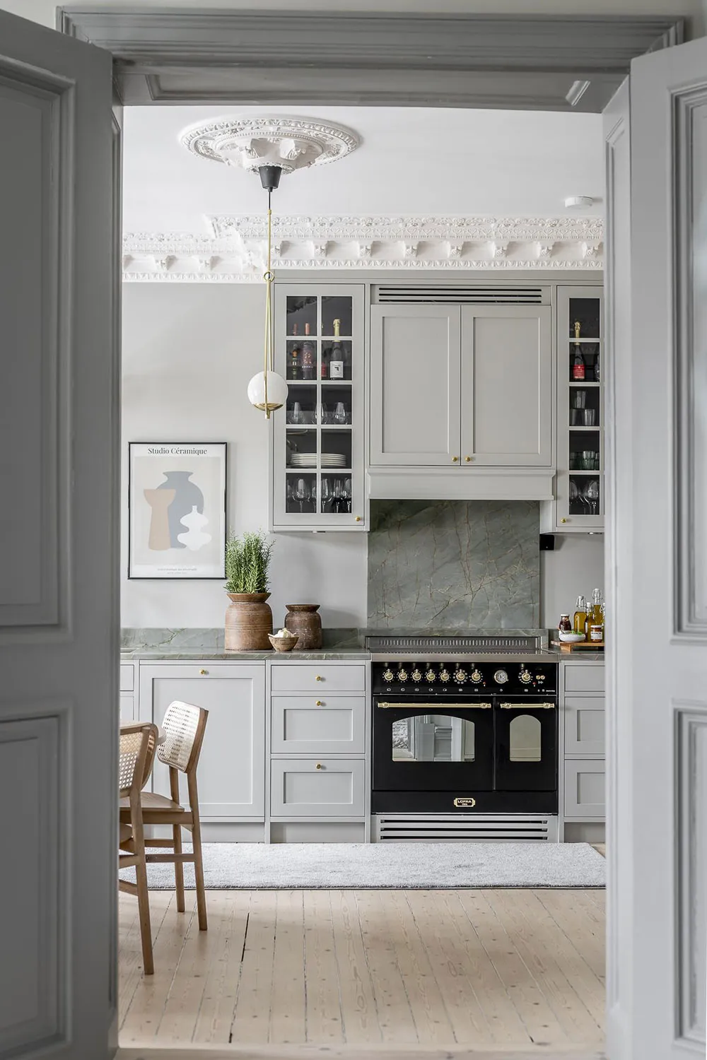 Cada habitación de esta casa sueca puede presumir de un rico decorado mural en estilo clásico.