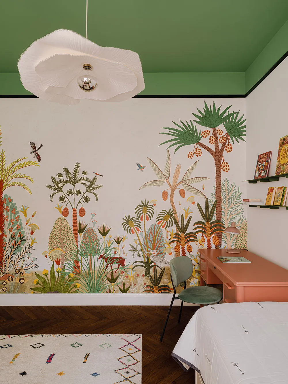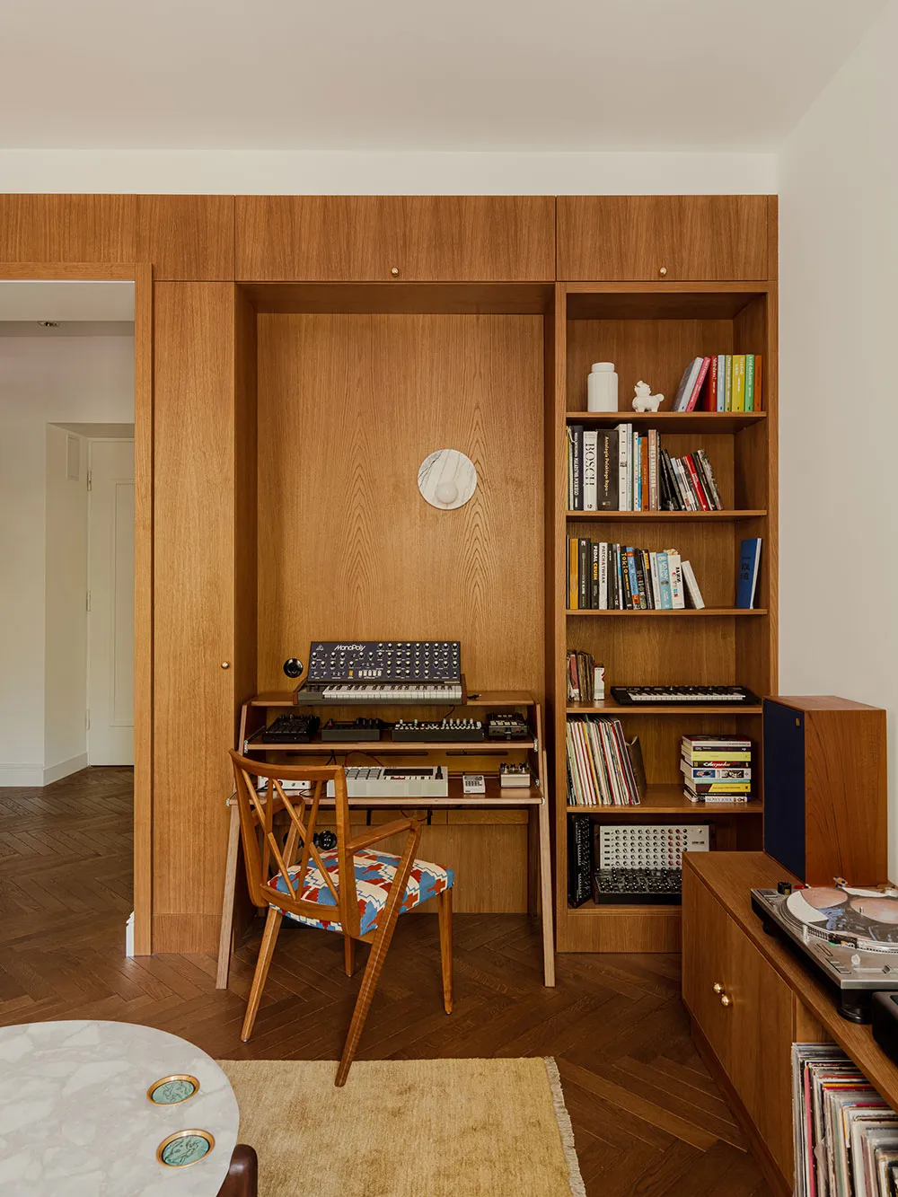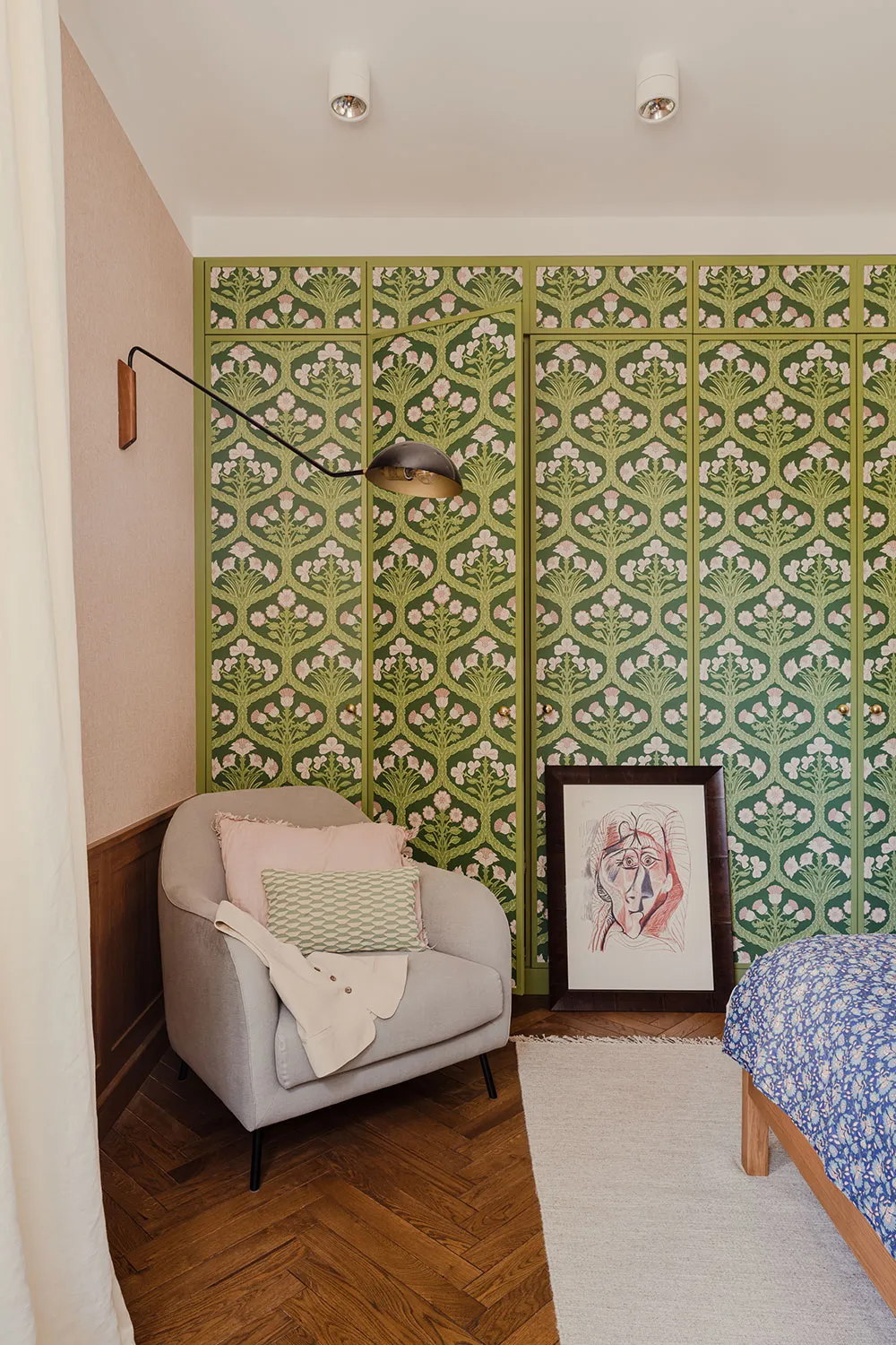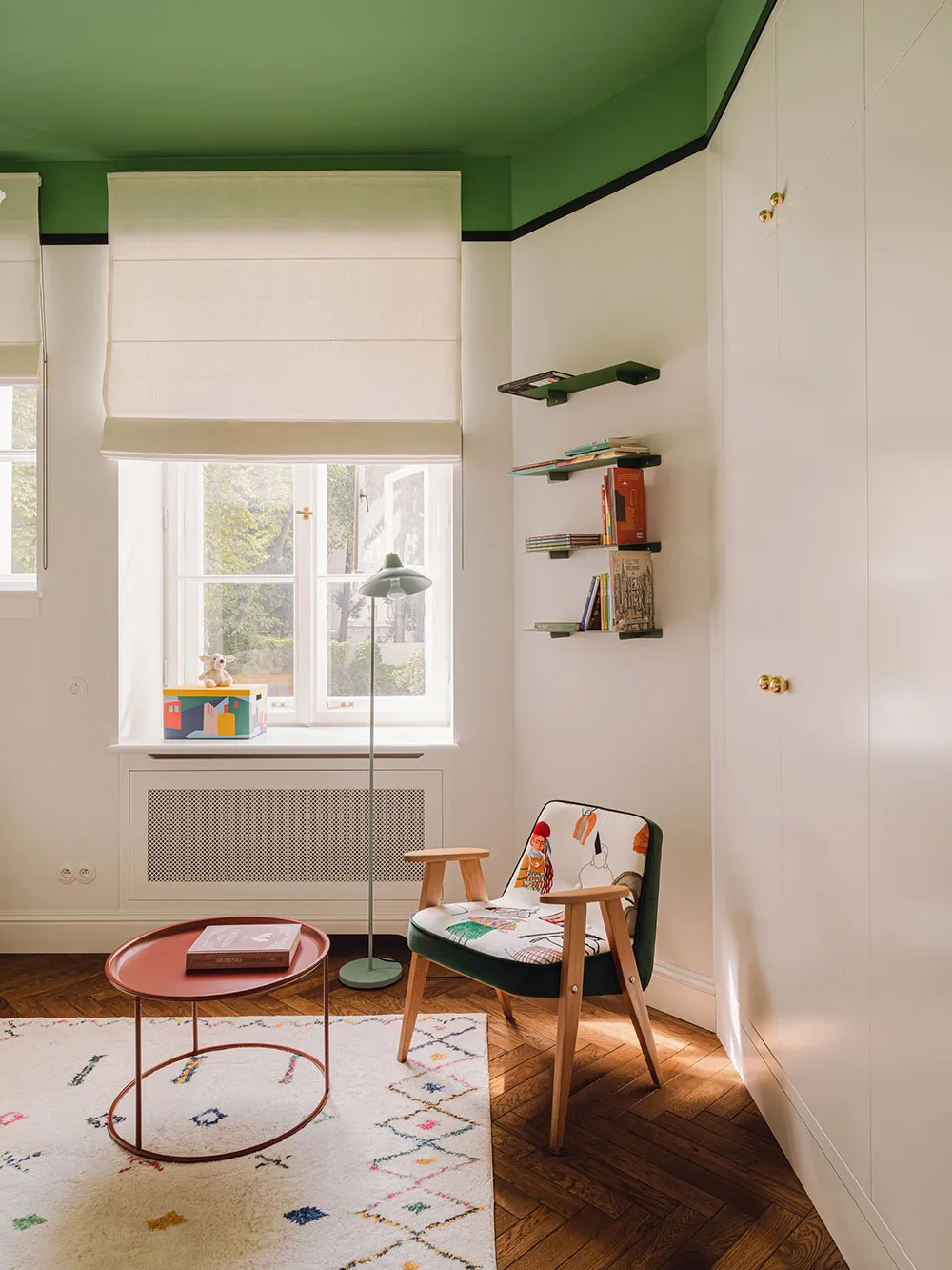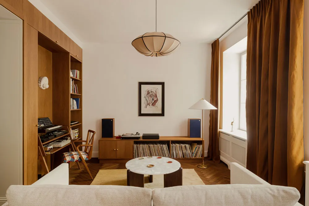 Diseños juguetones con impresiones y libros en el diseño de un apartamento en una casa preguerra en Varsovia