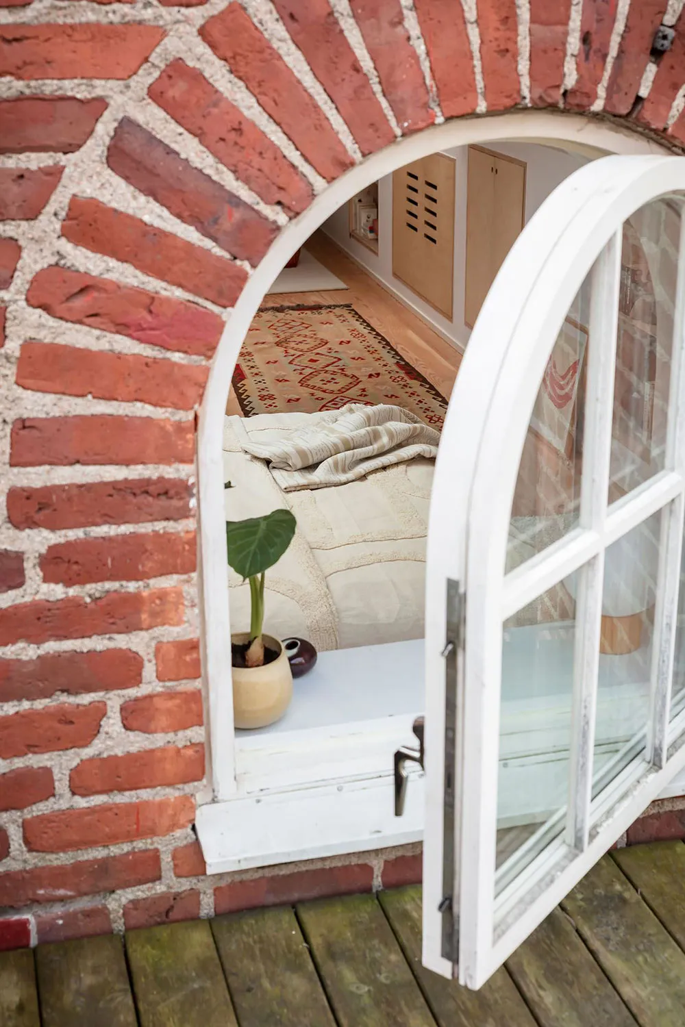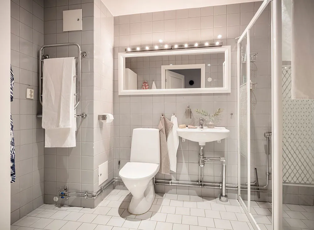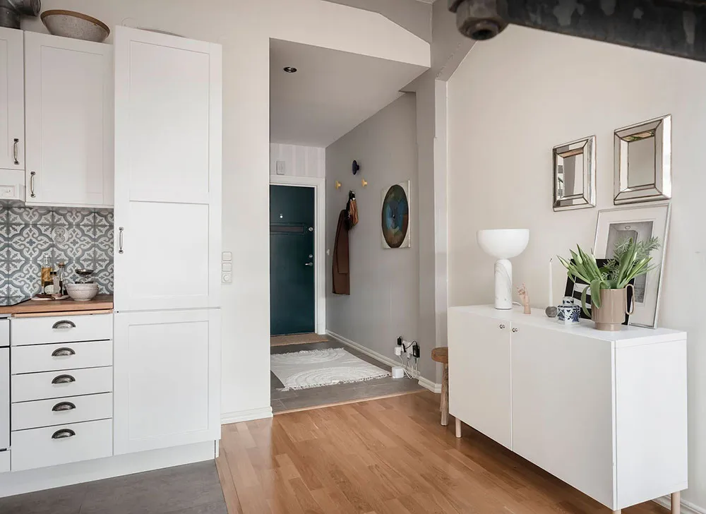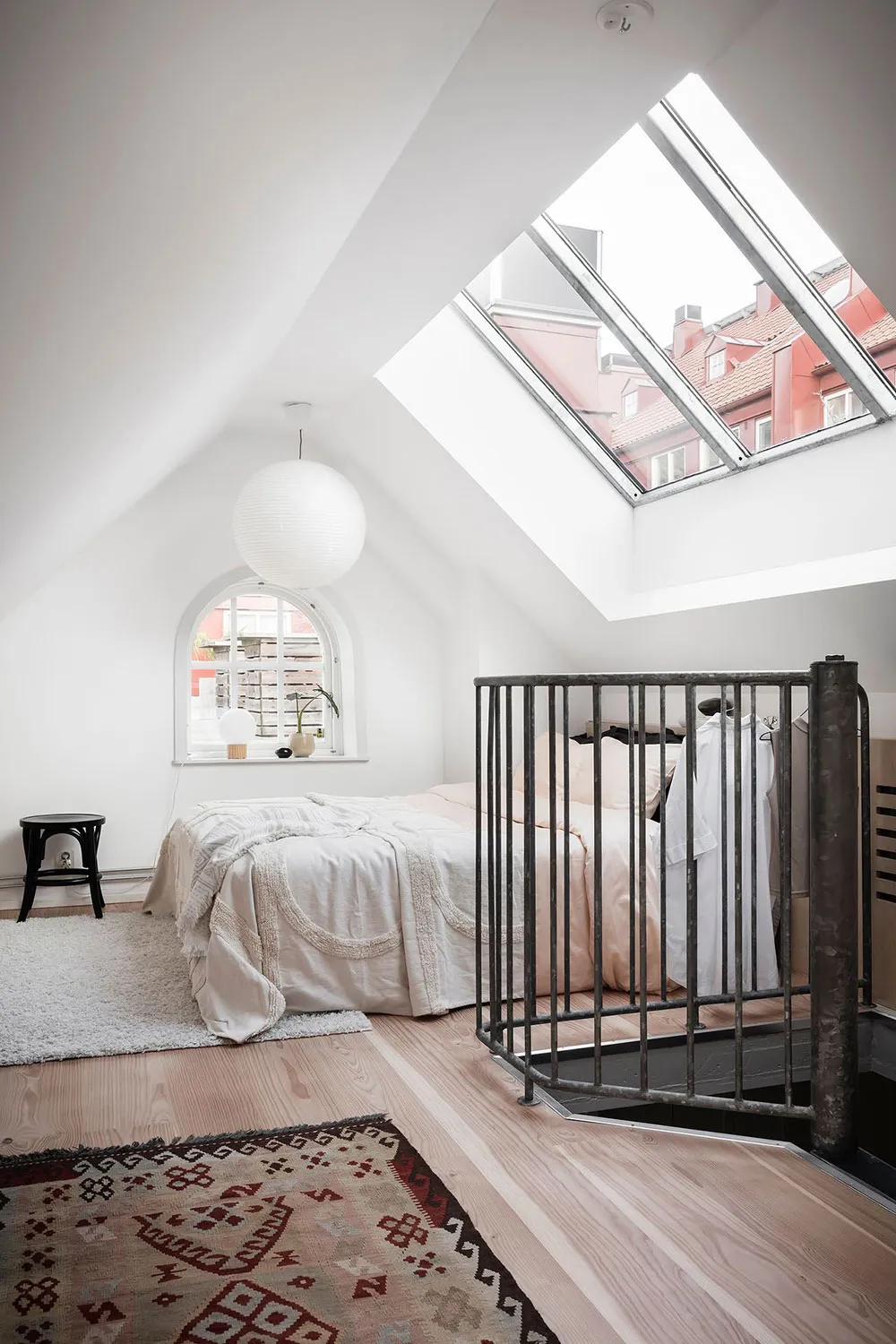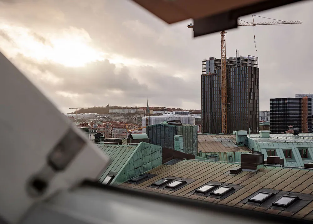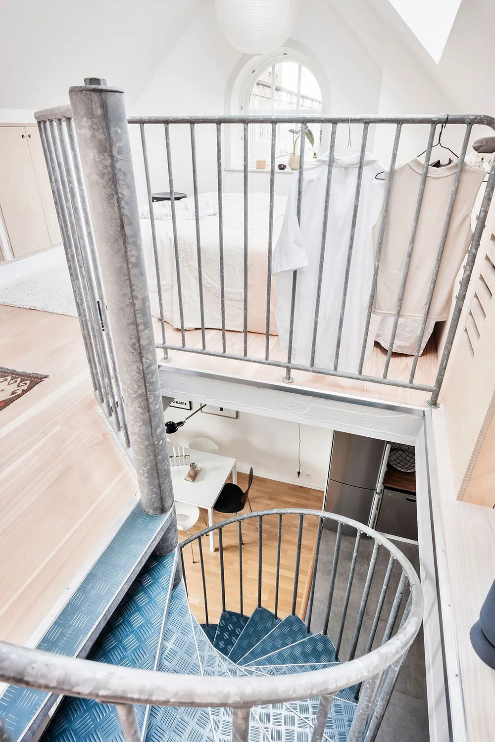 Este apartamento en Gotemburgo se distribuye de forma compacta en dos niveles, siendo el superior el que queda bajo el techo con ventanas de ático en el techo.