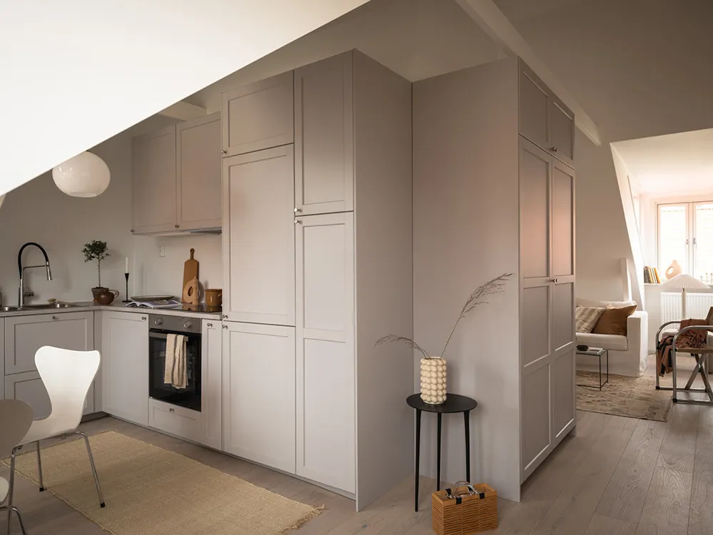 Interior cálido en tonos beige-gris en Gotemburgo (66 m²)
