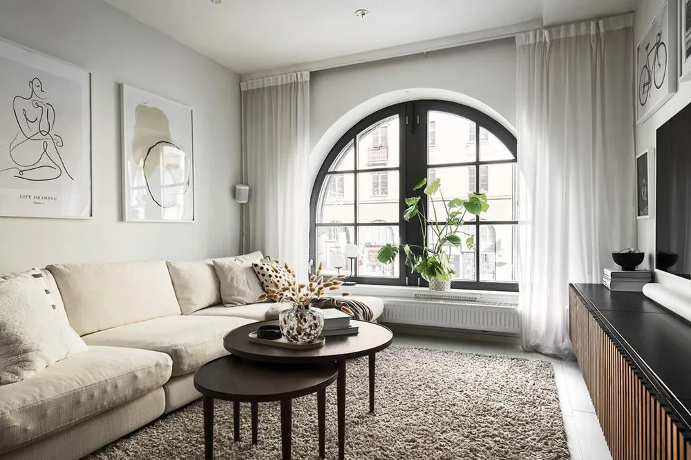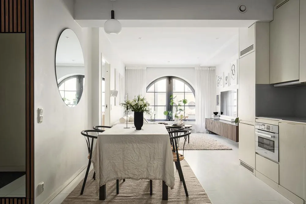 Apartamento pequeño en Estocolmo con ventanas arqueadas