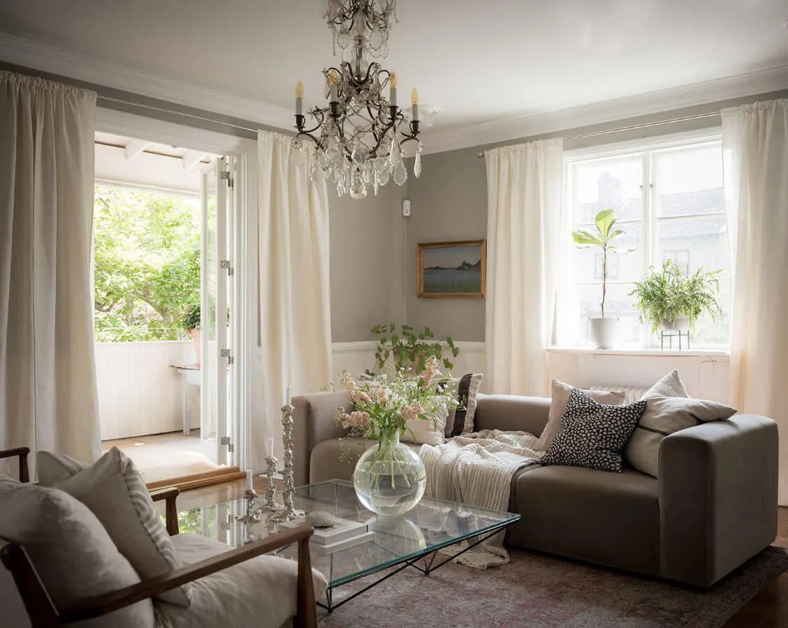 Interiores elegantes y sobrios de una encantadora casa de campo sueca