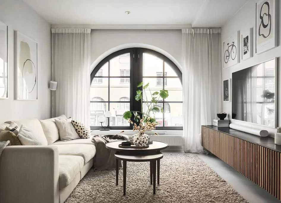 Apartamento pequeño en Estocolmo con ventanas arqueadas