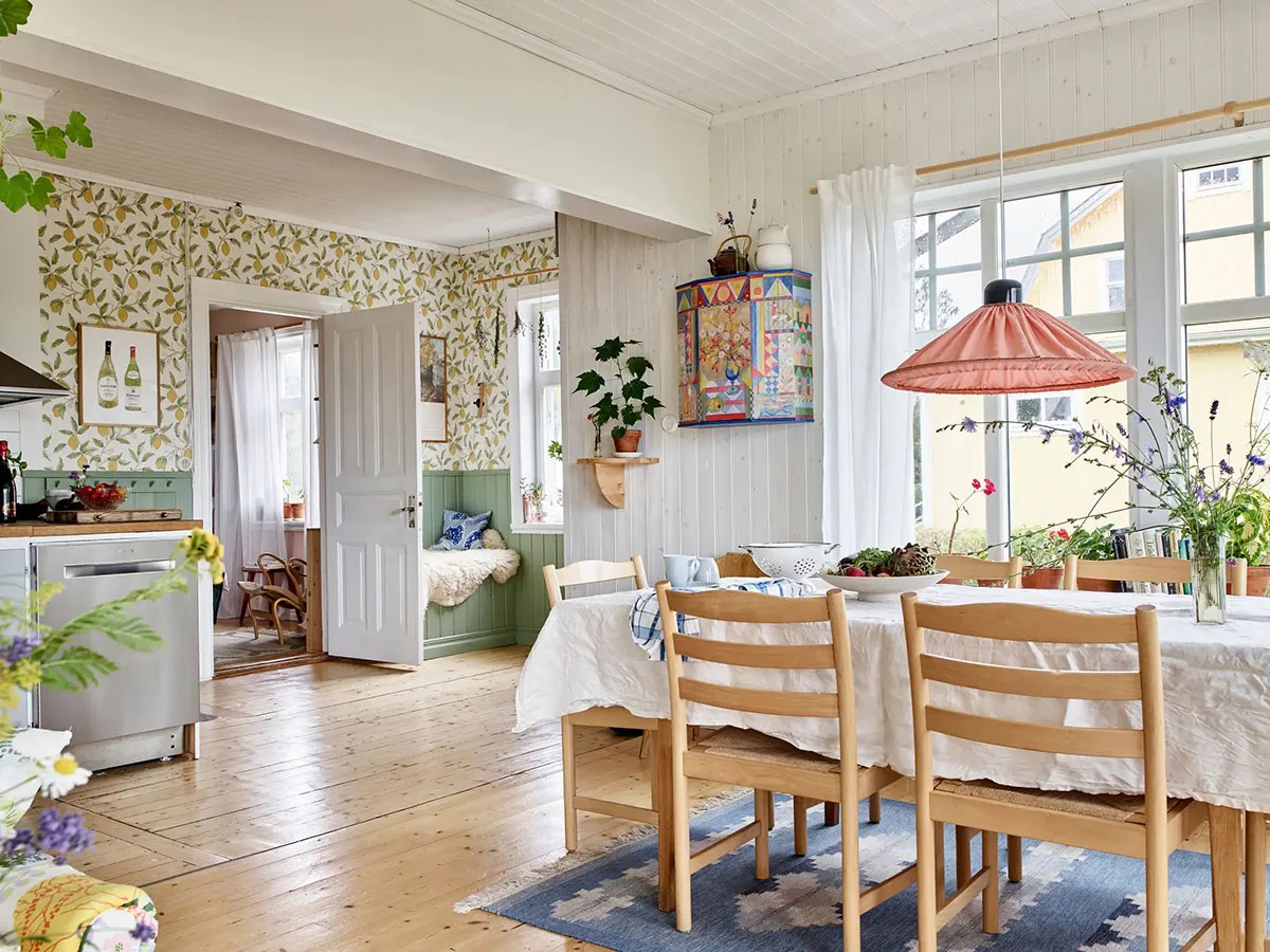 Diseños coloridos con estampados en una encantadora casa de campo sueca