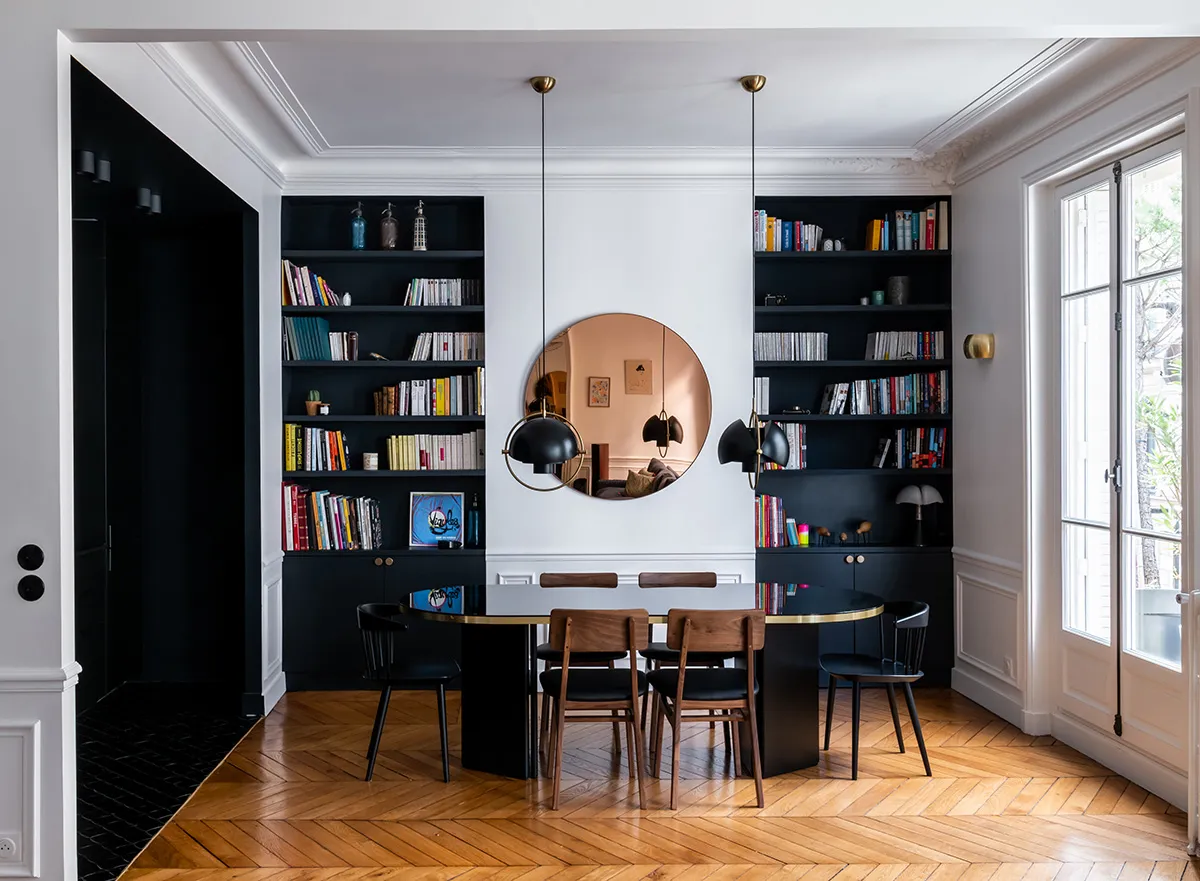 La principal característica de este espacioso apartamento en París es su ubicación angular y la planificación triangular, lo que da lugar a un espacio interesante e inusual.
