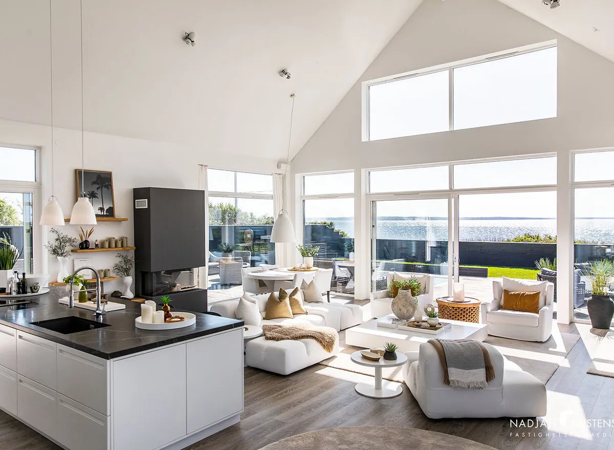Casa escandinava moderna en la costa del mar