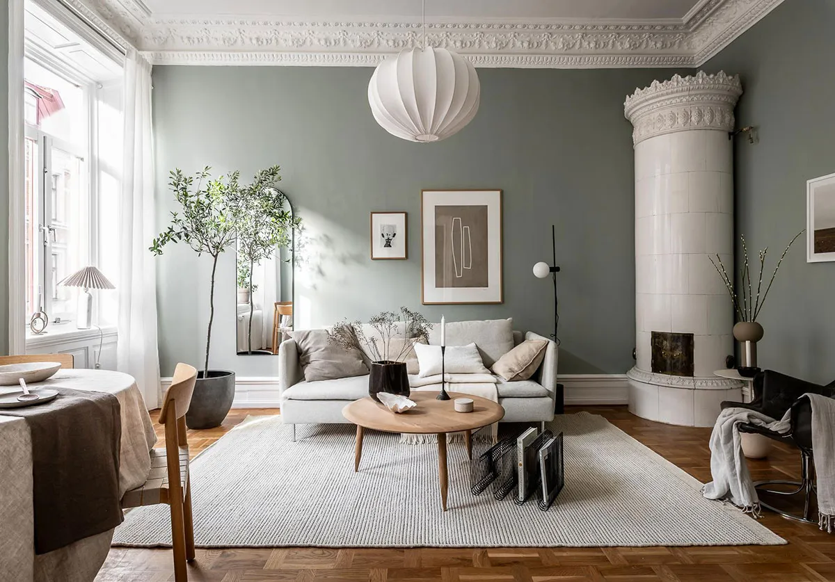 Interiores verdes de apartamento escandinavo (74 m²)