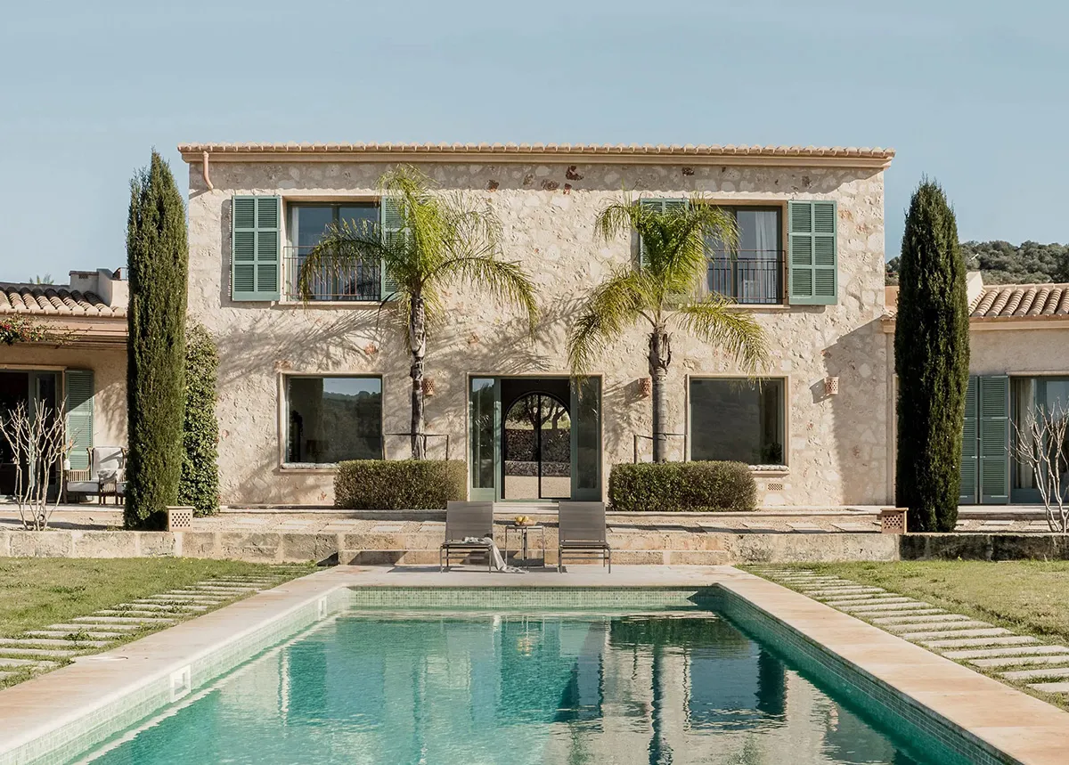 Hermosa villa de piedra en Mallorca con barandales y piscina
