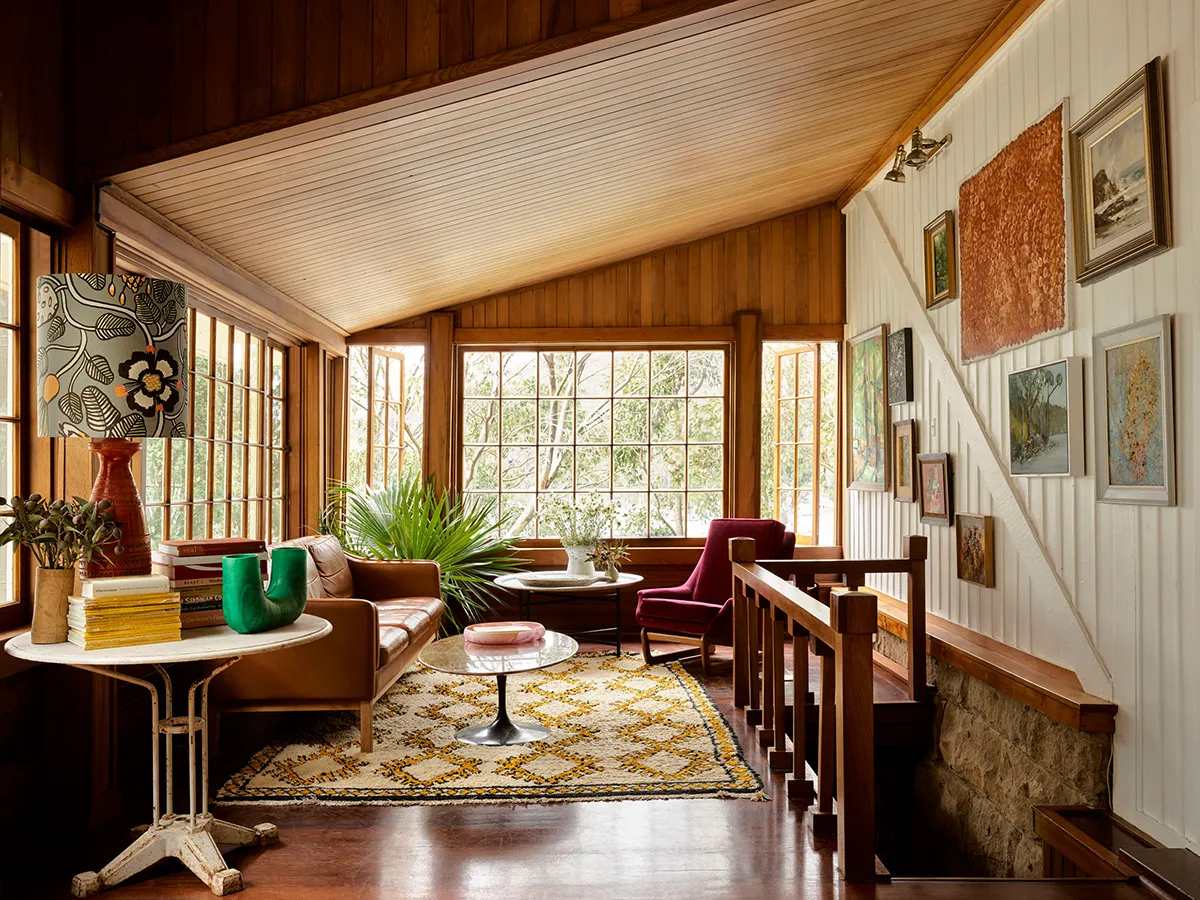 Amenos interiores de madera en un antiguo coto de campo en la costa de Australia