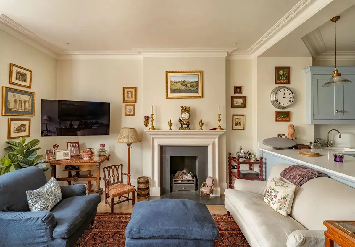 Interior inglés acogedor con pinturas en el centro de Londres