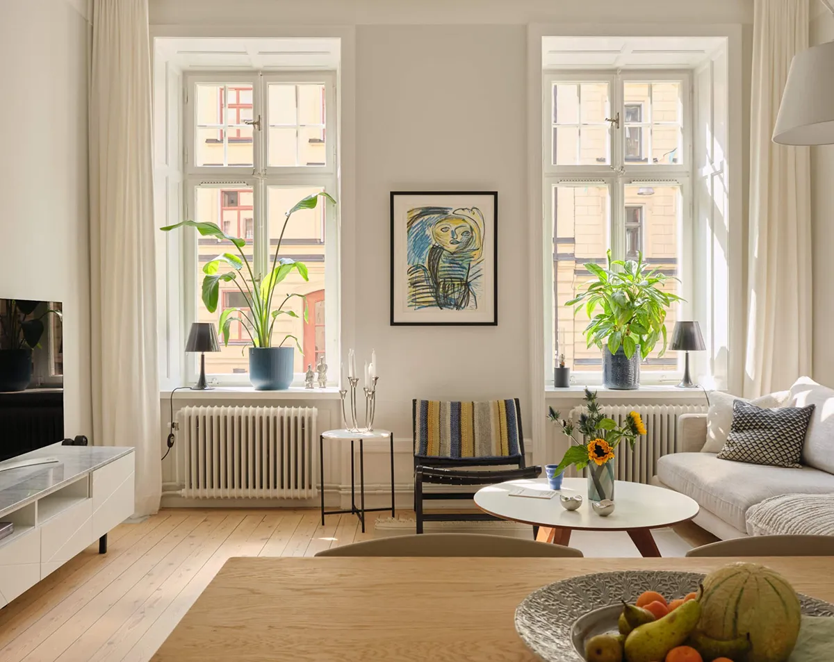 Interior escandinavo luminoso con acentos frescos (78 m²)