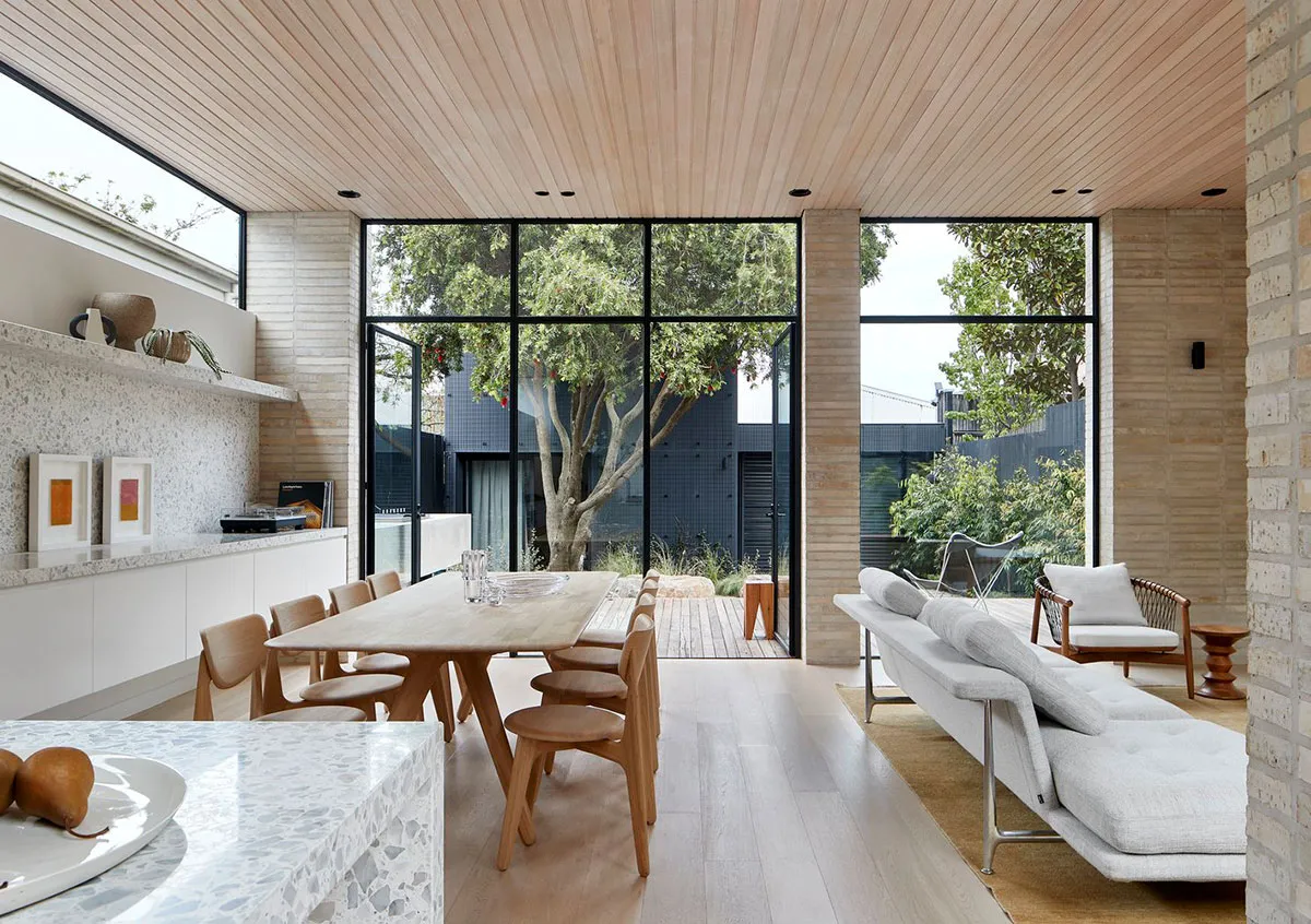 Piedra, madera, ladrillo: un interior moderno acogedor en Melbourne