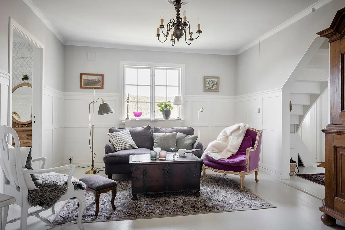 Interiores blancos y decoración vintage: una hermosa casa de campo en Suecia