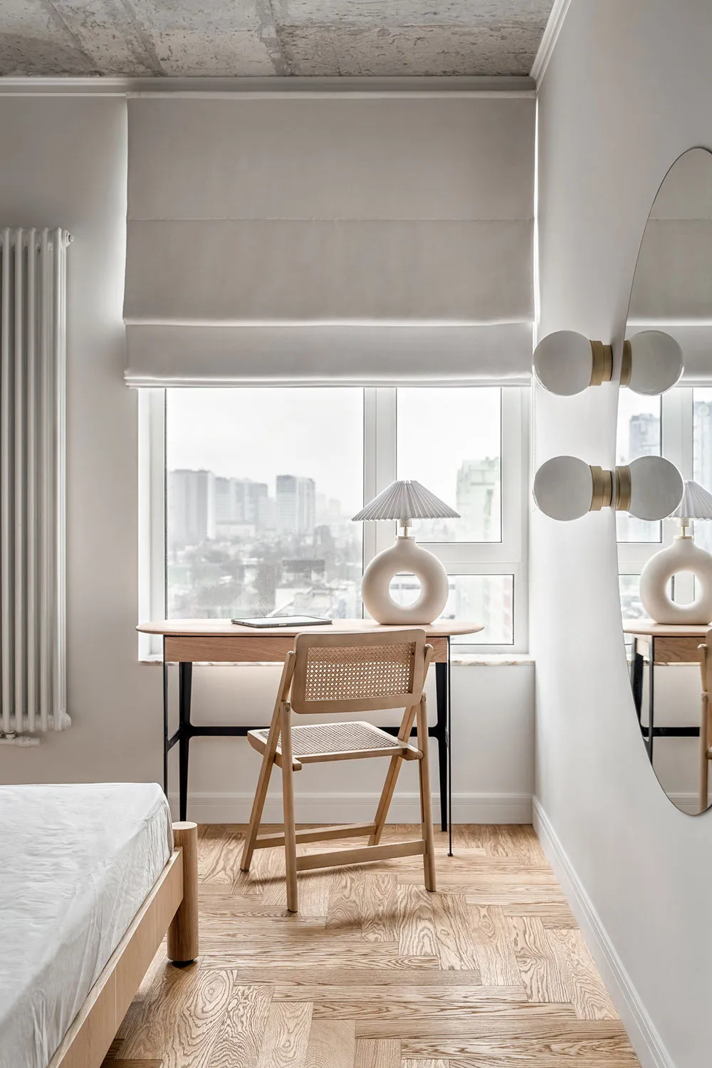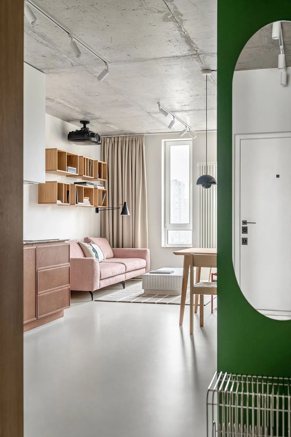 Pequeña habitación pastel con diseño de interior en Kiev para descanso y trabajo (38 m²)