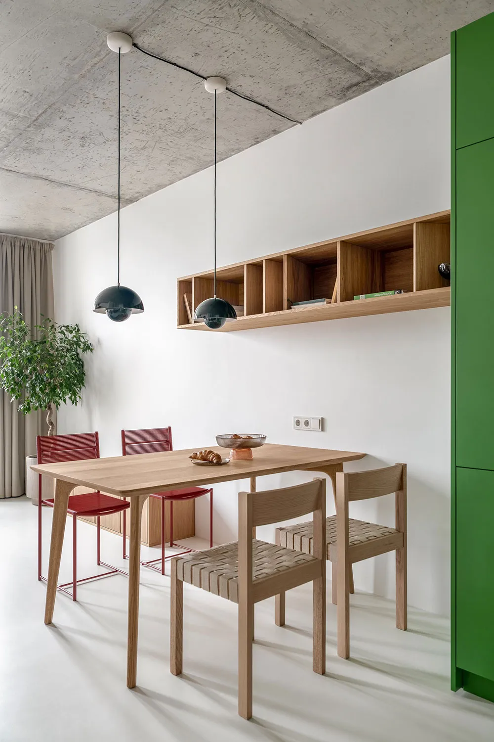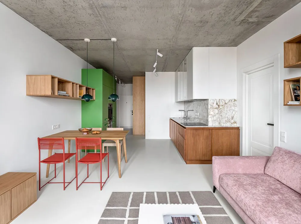 El diseño de este moderno apartamento en Kiev, según el proyecto Between the Walls, representa una interesante combinación de elementos de distintos estilos y colores vibrantes.