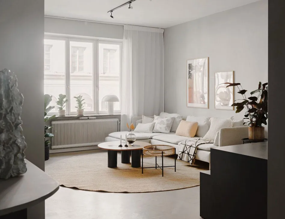 Interior escandinavo tranquilo con dormitorios coloridos y detalles decorativos