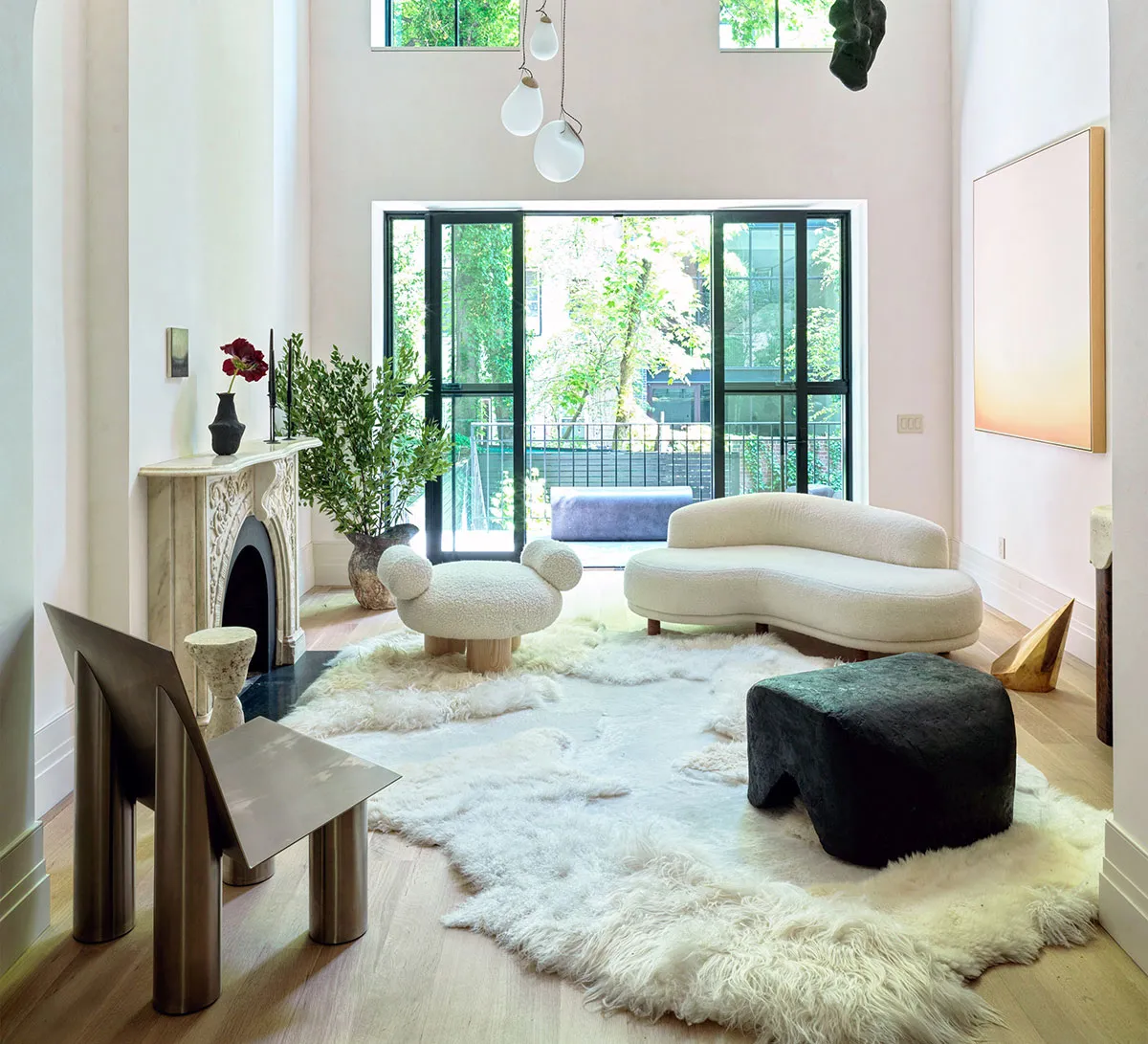 Busto antiguo, paredes de ladrillo y estampados florales: un interesante loft en Nueva York