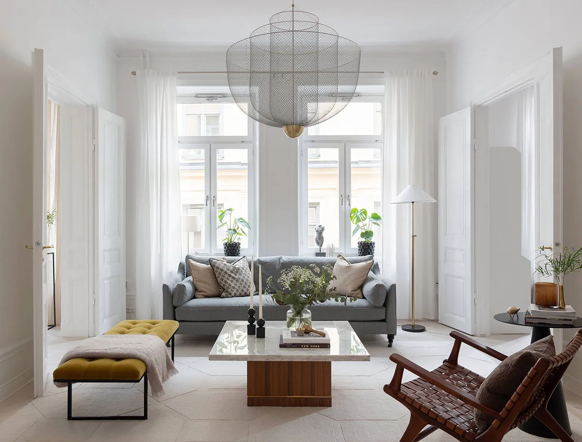 Grandes ventanas y diseño moderno cálido: apartamento en Estocolmo
