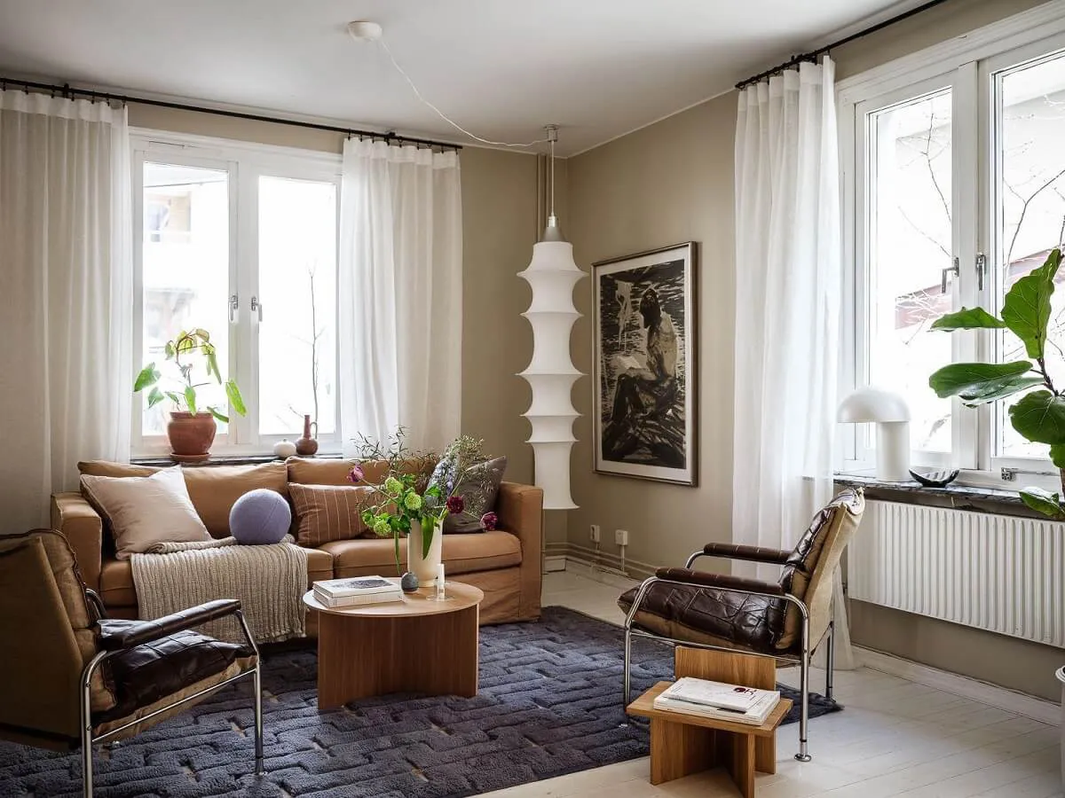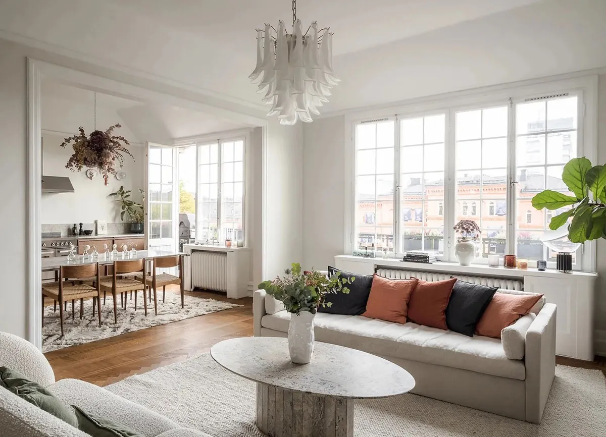 Grandes ventanas y diseño moderno cálido: apartamento en Estocolmo
