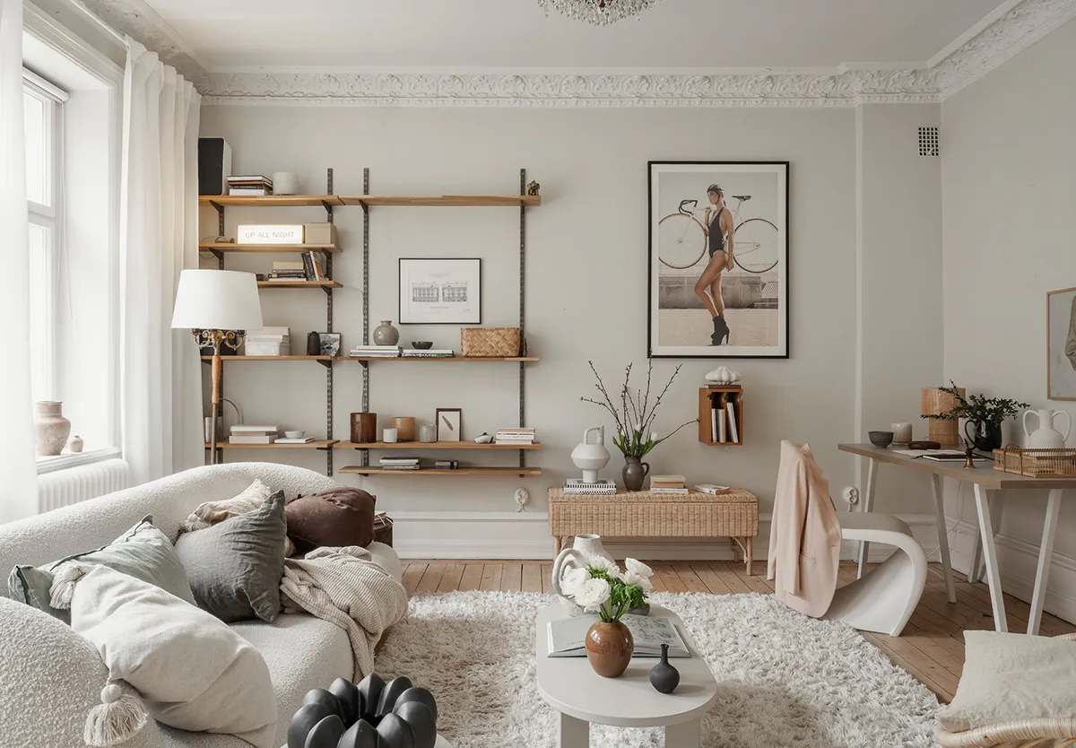 Interior escandinavo cálido con notas naturales agradables en el diseño