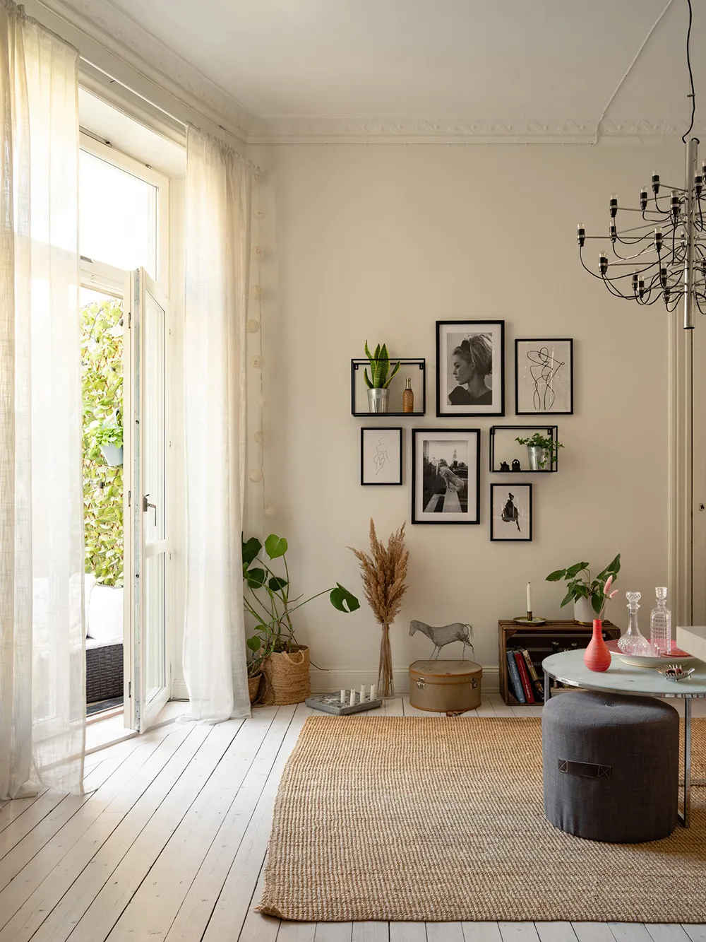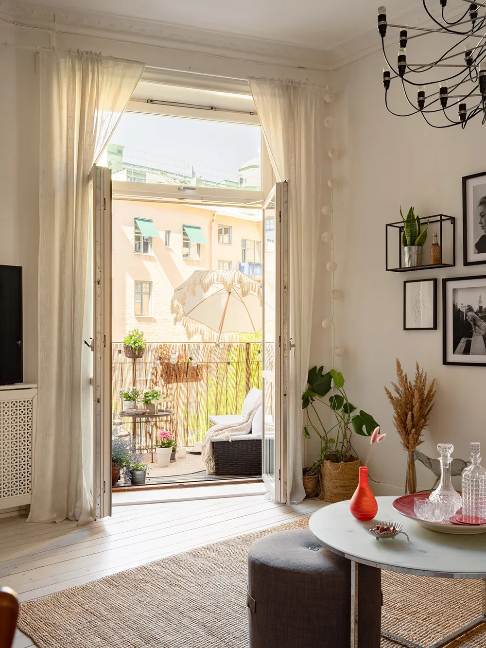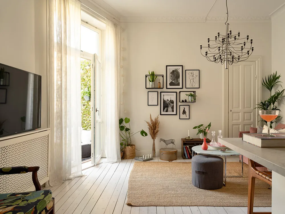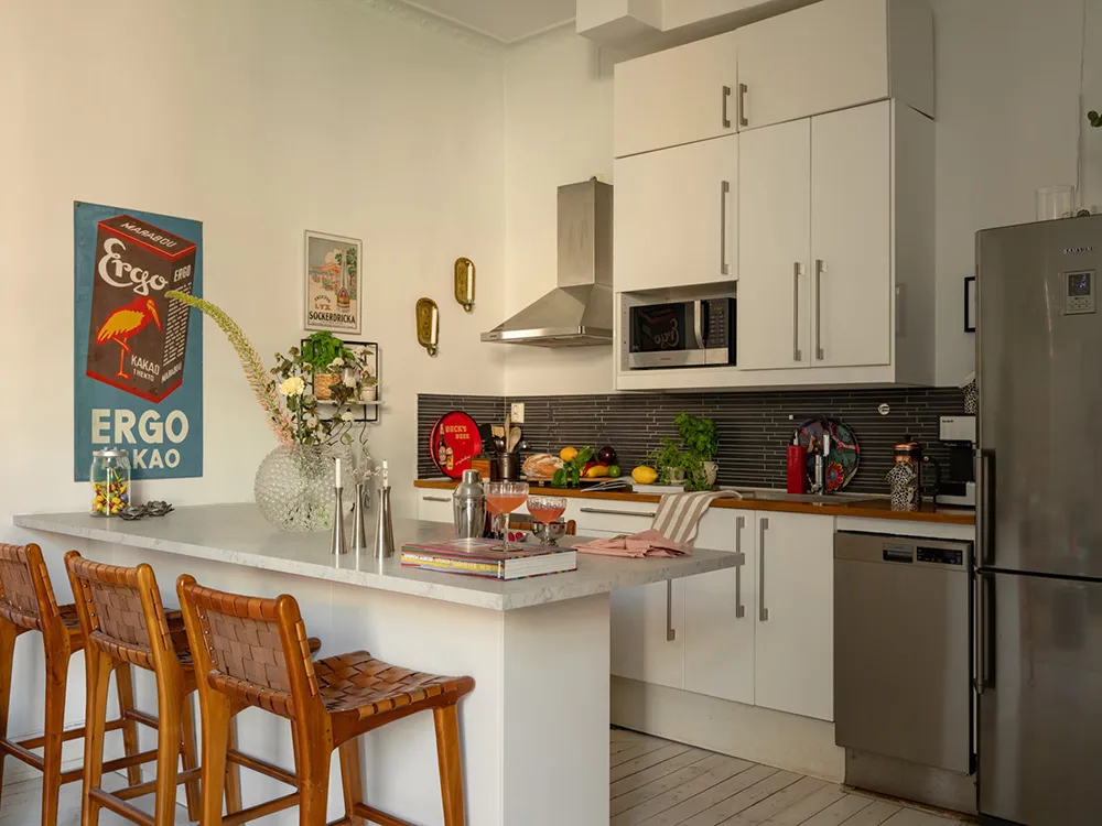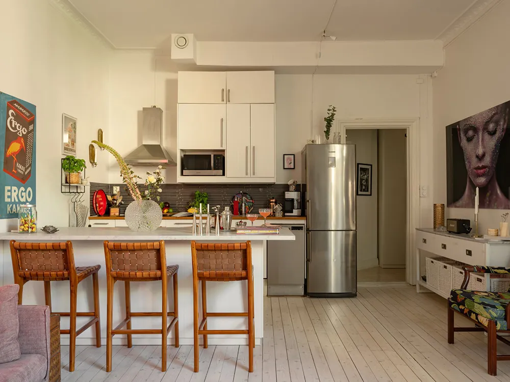 Esta pequeña casa de dos habitaciones en Estocolmo, como se muestra en la primera fotografía, cautiva por su atmósfera cálida y acogedora, y su diseño meticulosamente pensado.