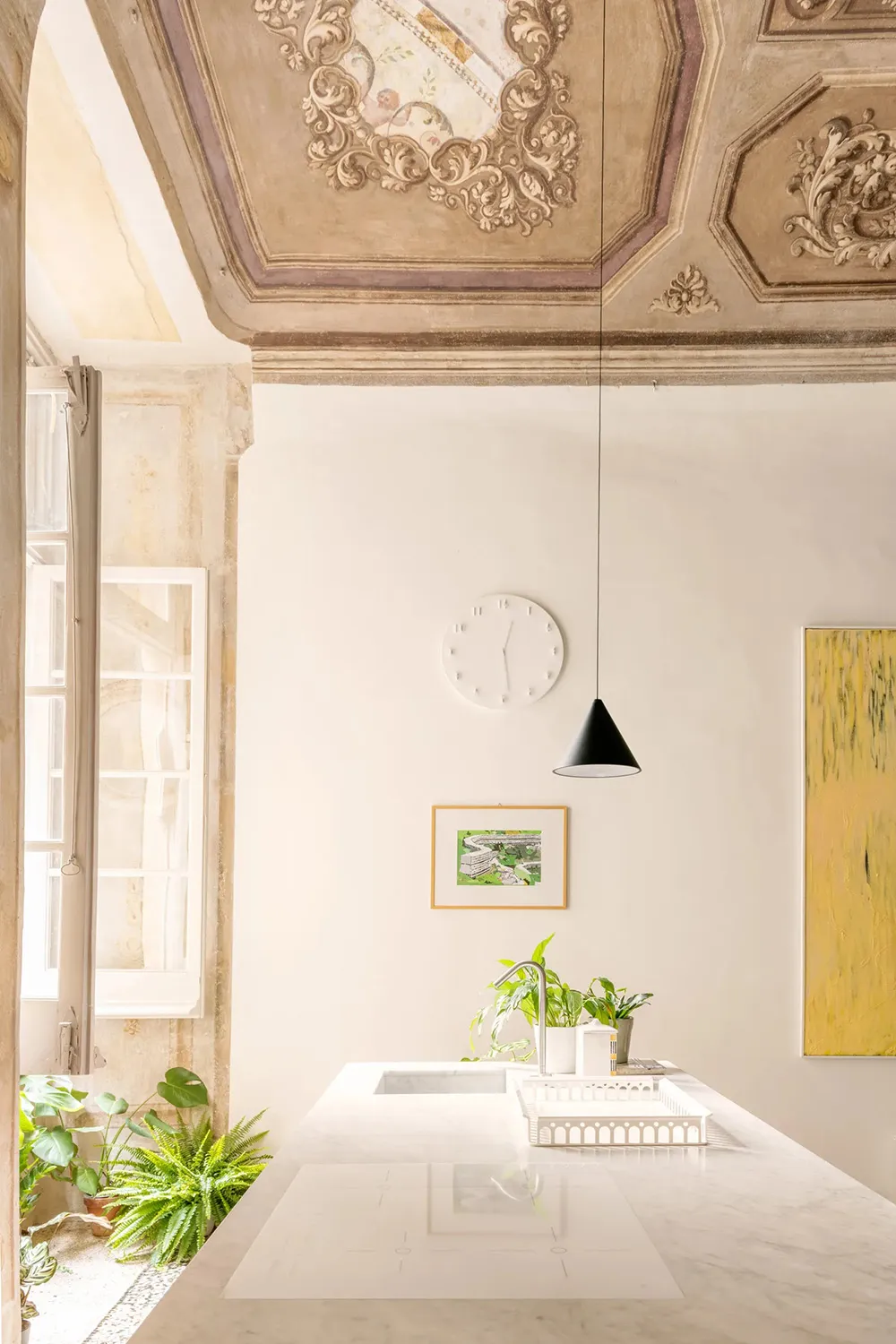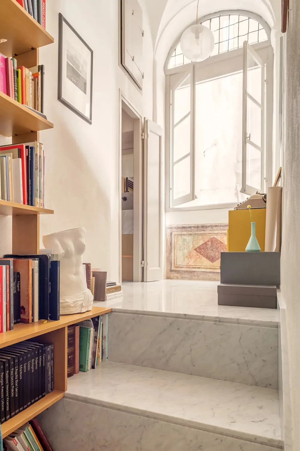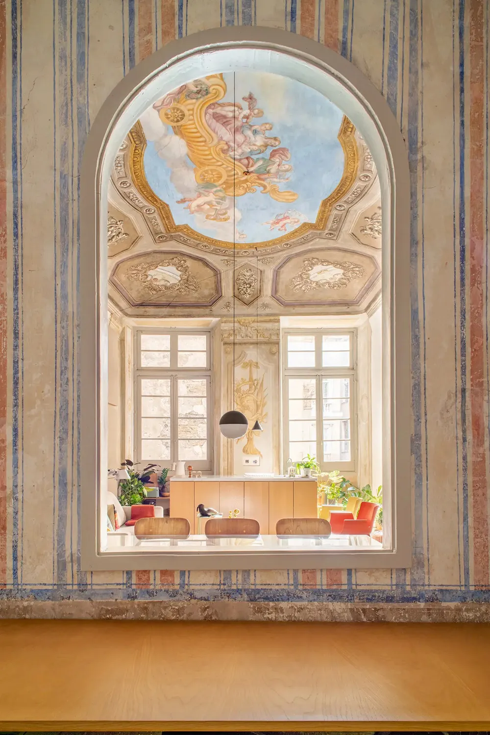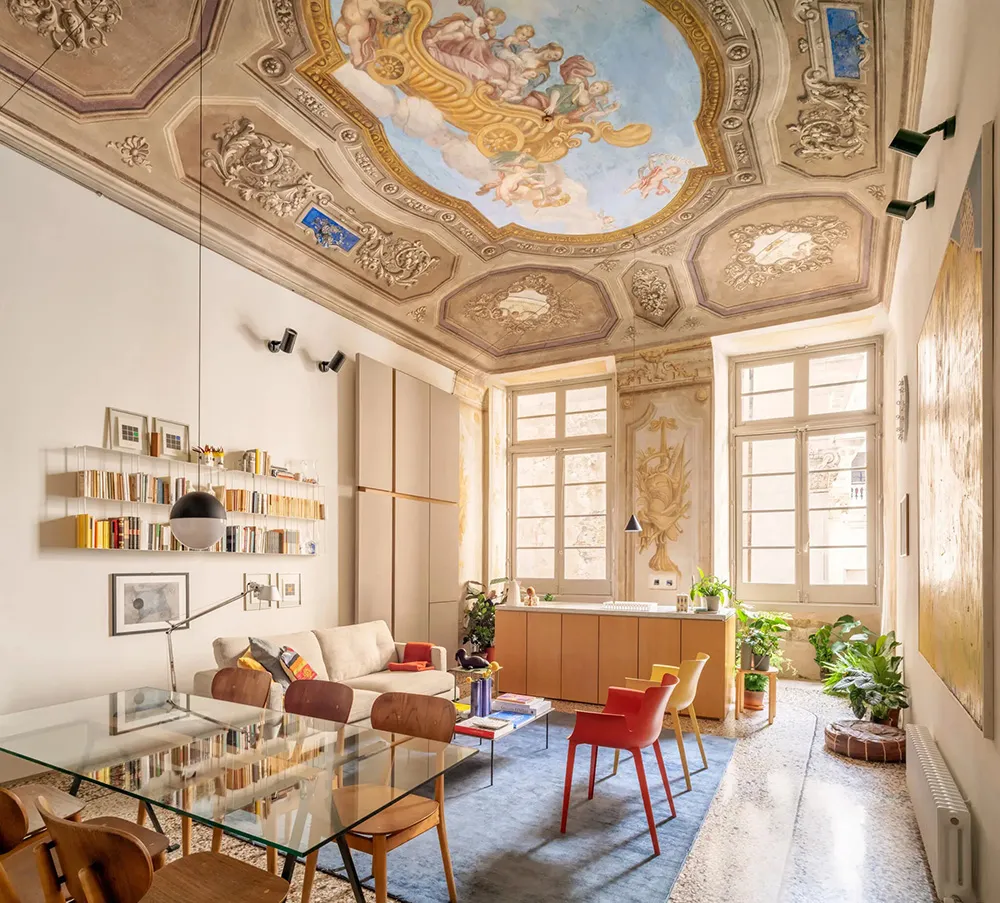A los dueños de esta magnífica apartamento en Génova no hace falta ir al museo: el techo y las paredes de la mayoría de las habitaciones están pintados con frescos reales.