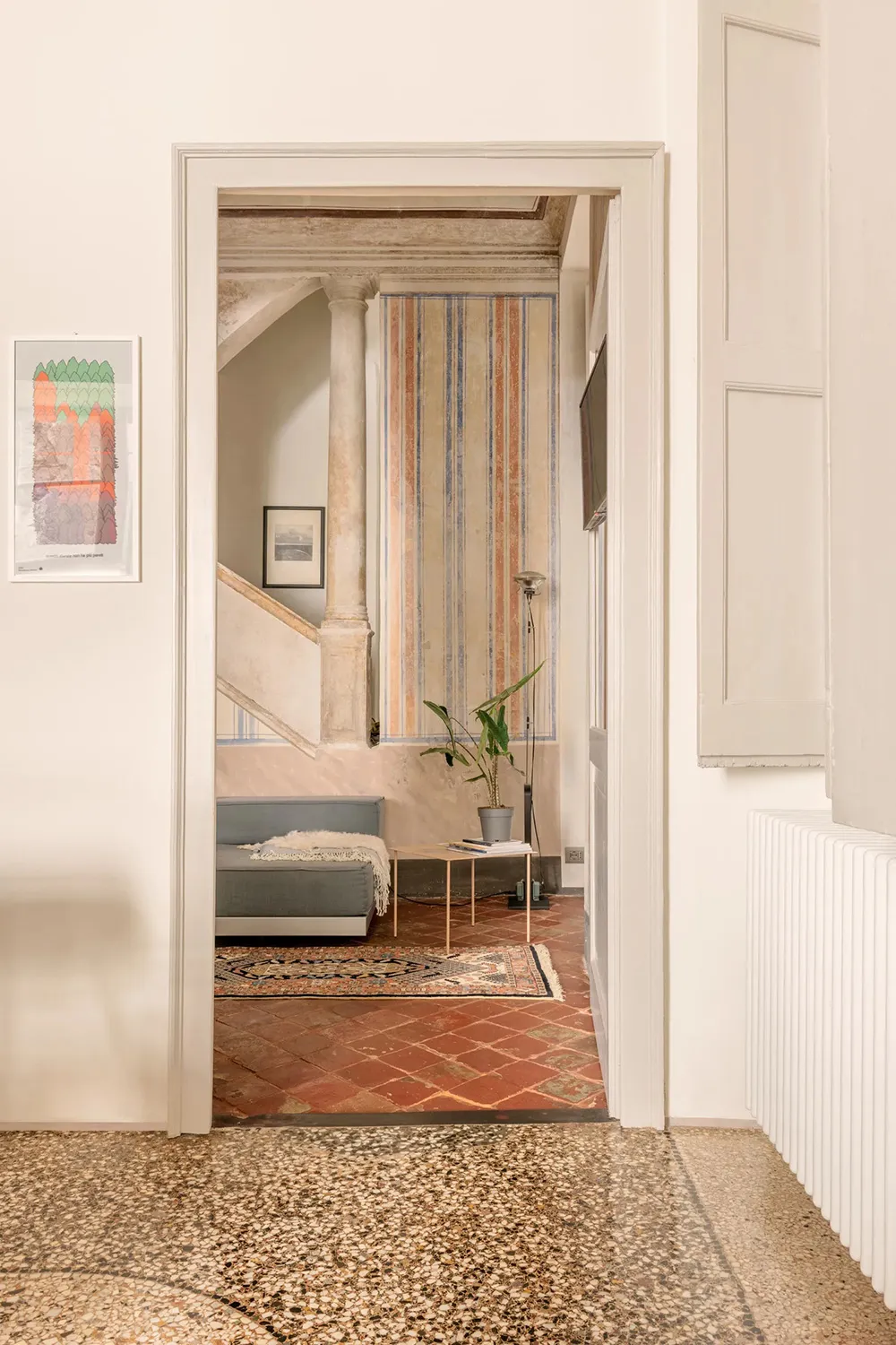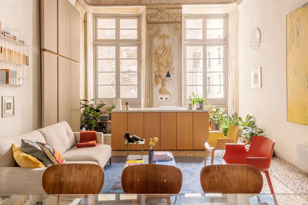 Interior moderno brillante en un palacio del siglo XII en Génova