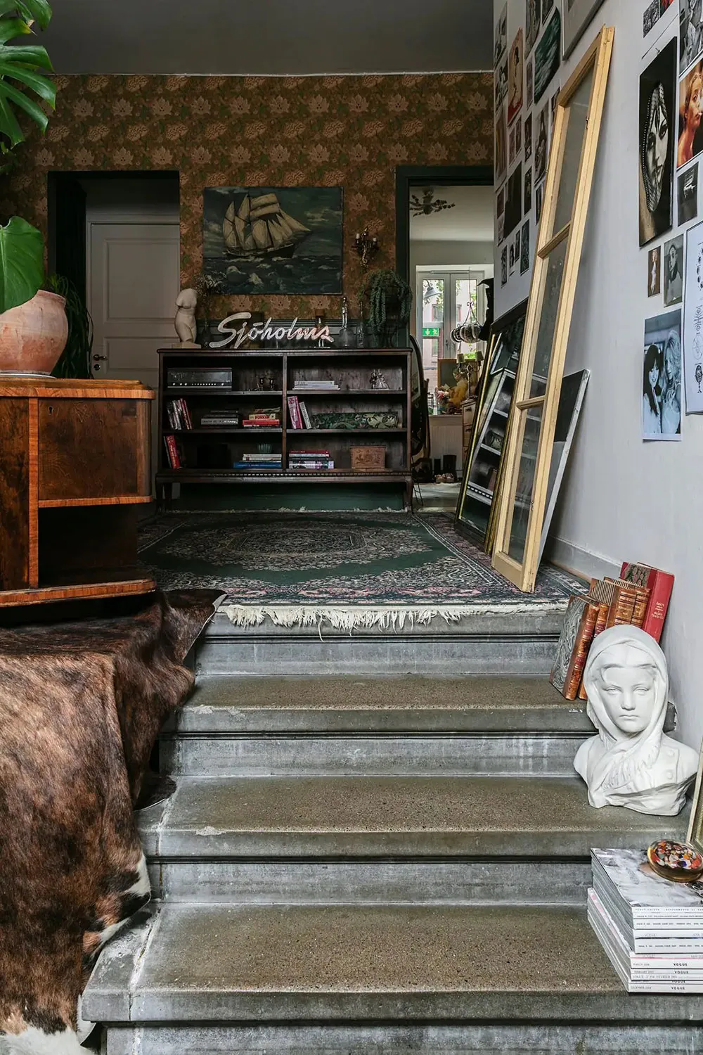 Pósteres y libros en el diseño de una vivienda moderna en Suecia