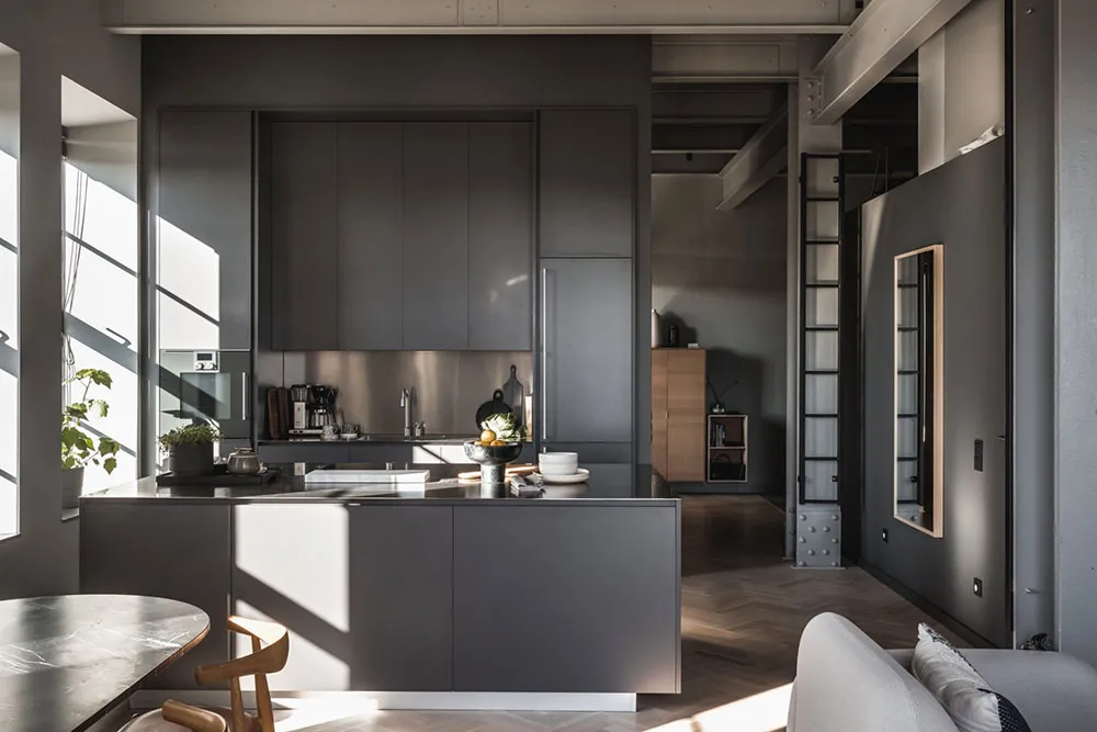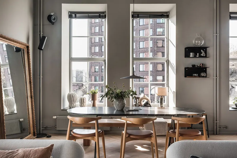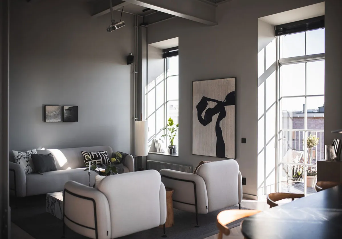Esta vivienda está ubicada en Estocolmo, pero sus interiores reflejan toques de lofts de Nueva York.