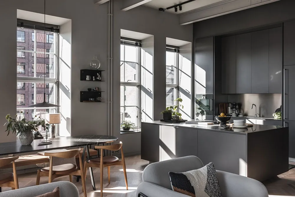 Estilo moderno gris con carácter industrial en Estocolmo (77 m²)