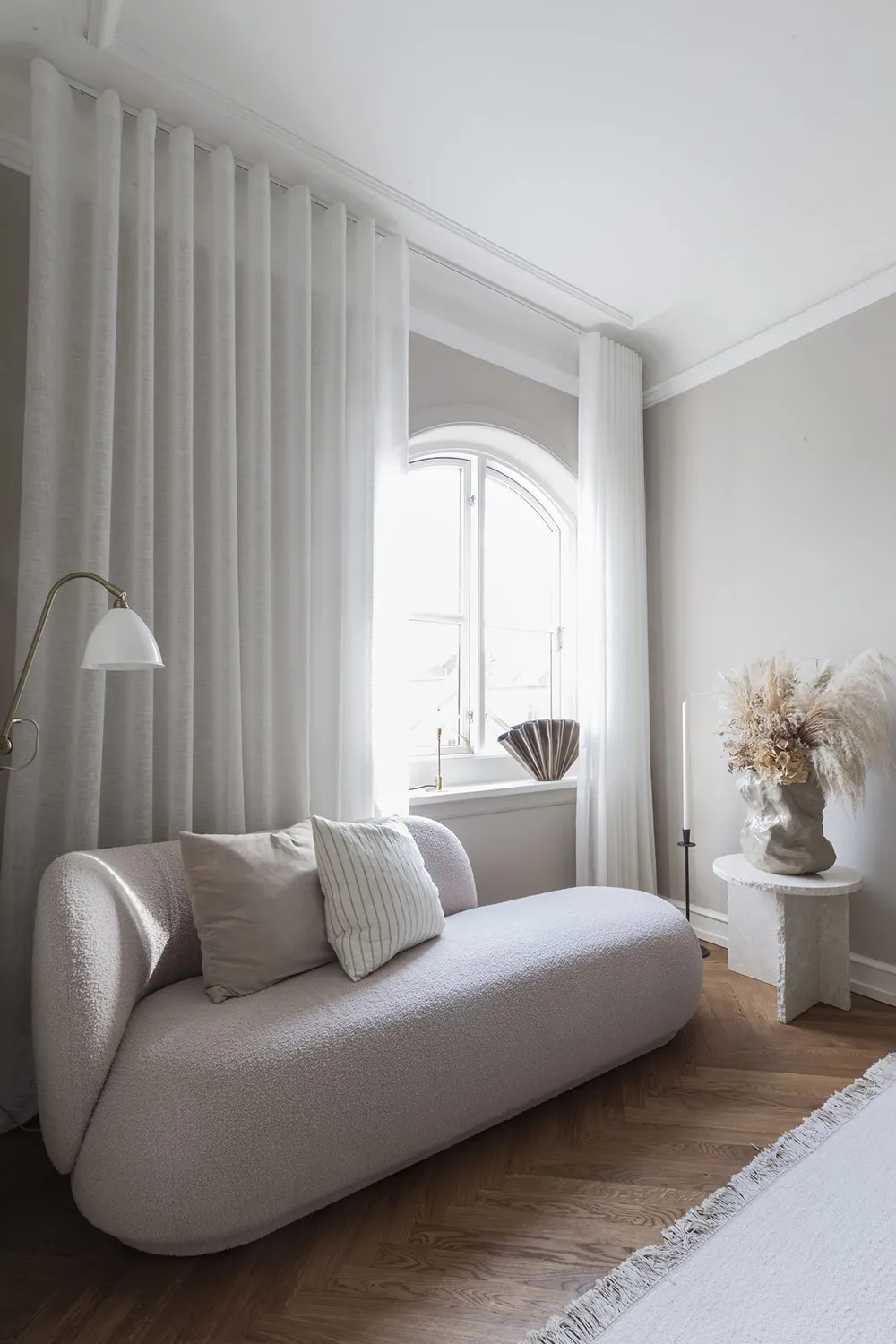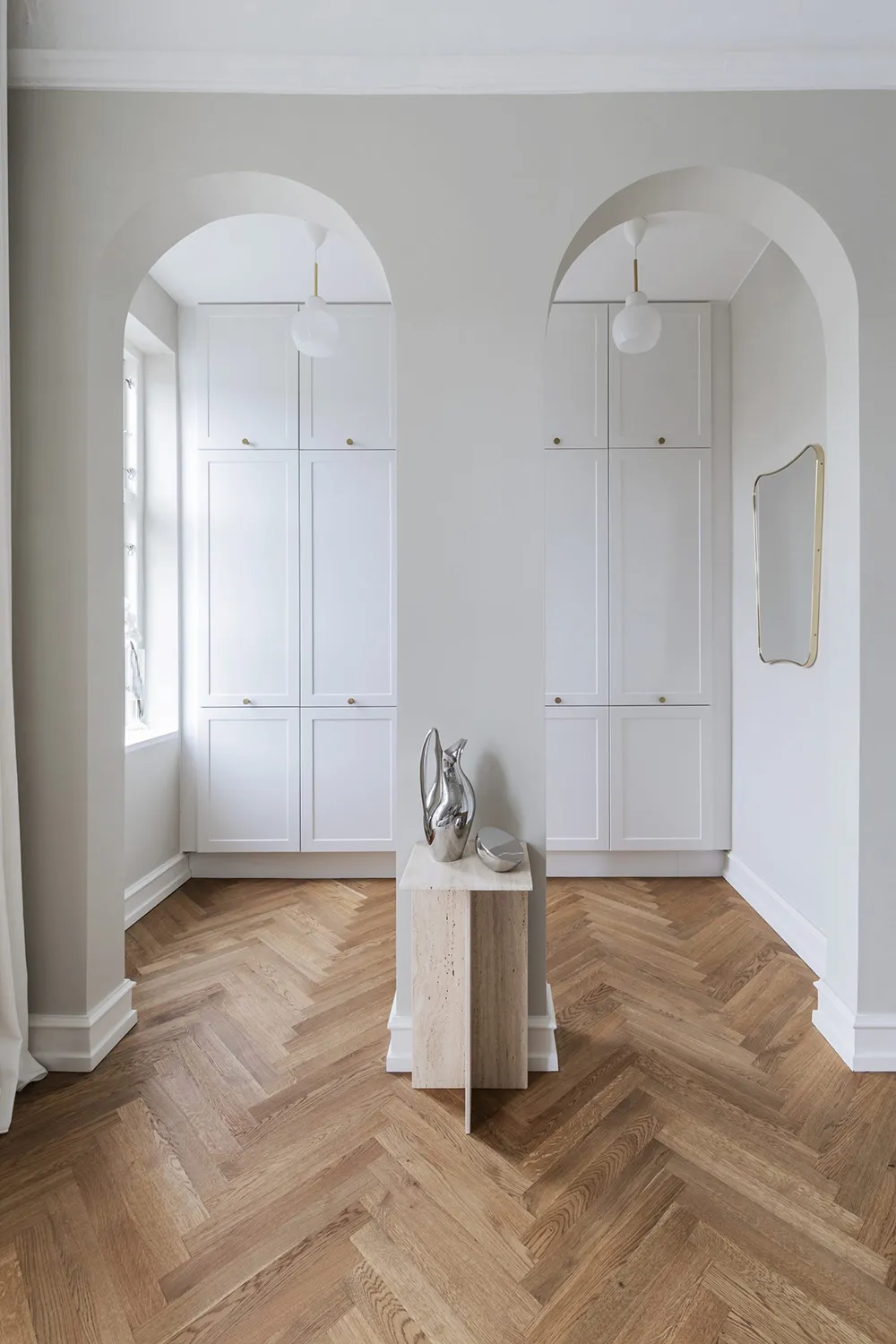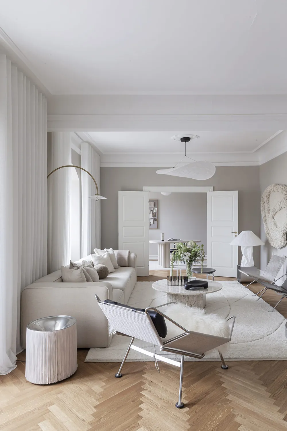 El diseño de este apartamento en el danés Ørbaek, aunque monocromático, es muy refinado y sofisticado.