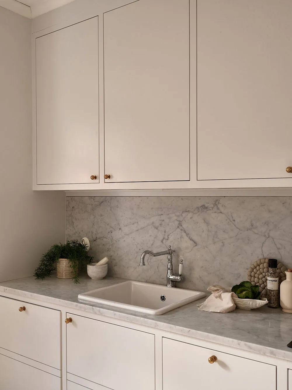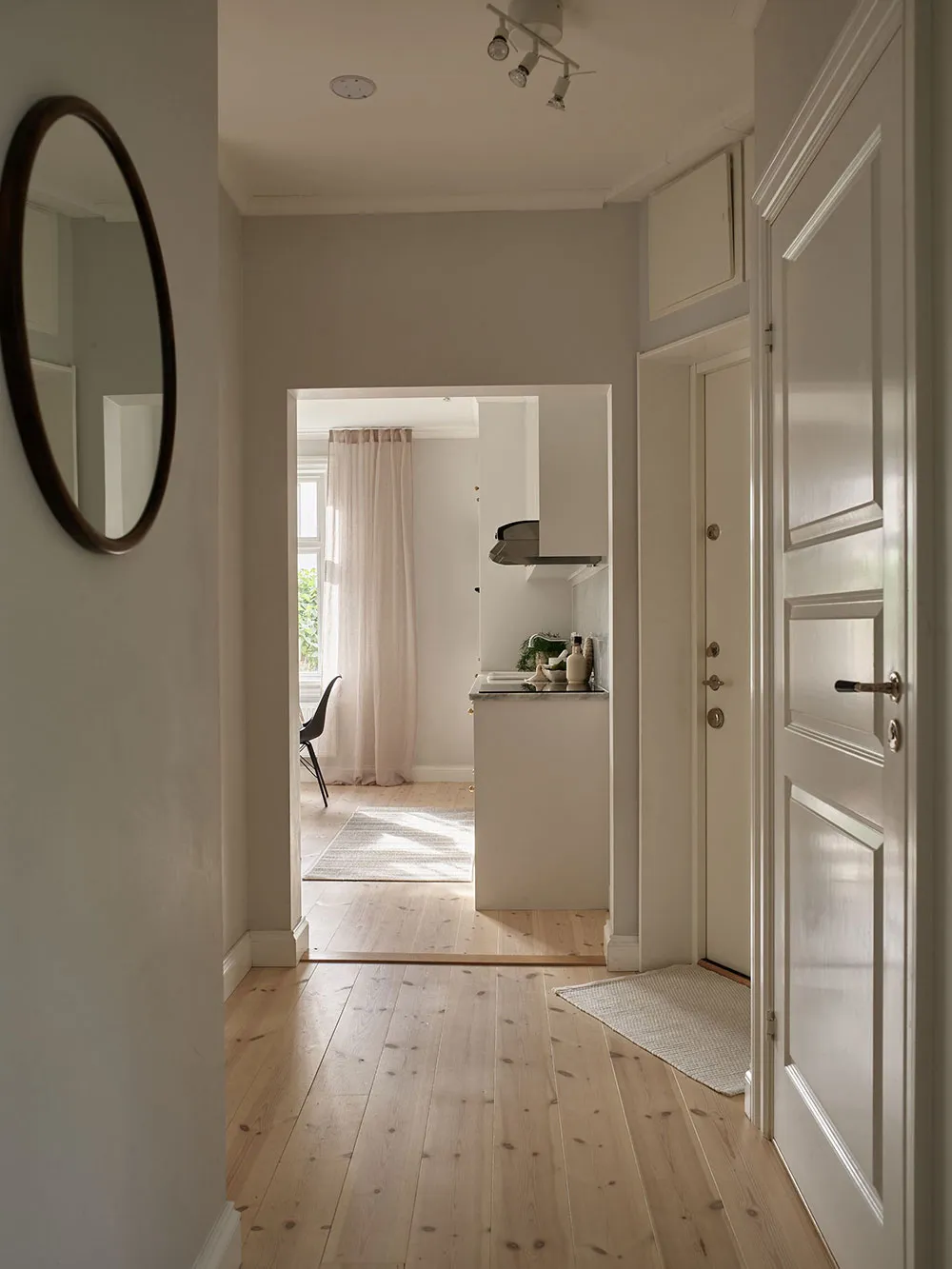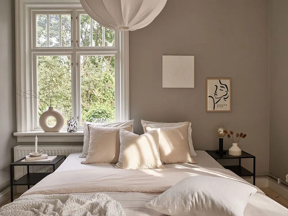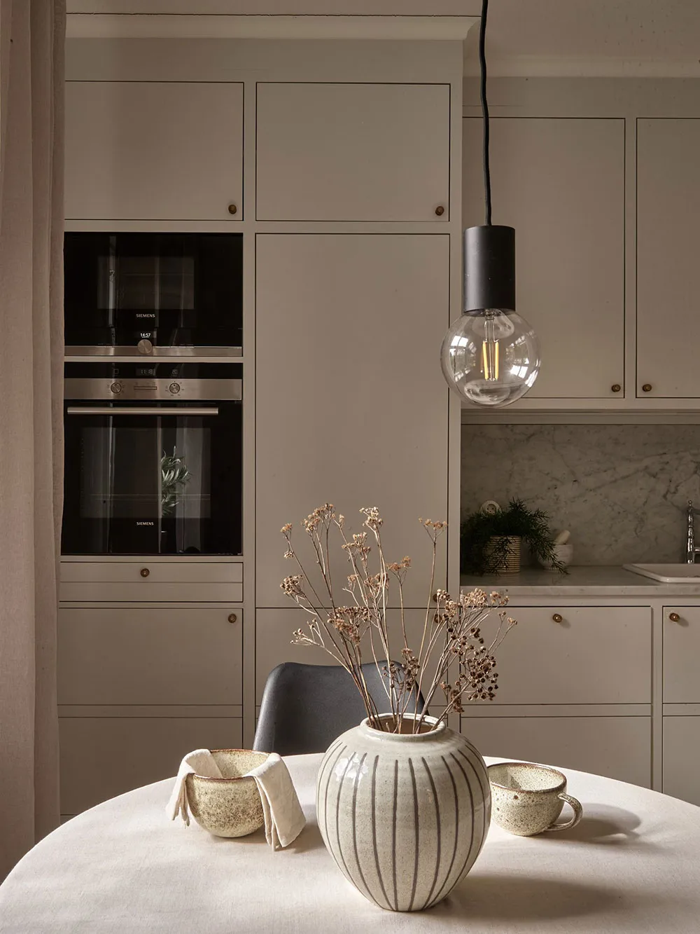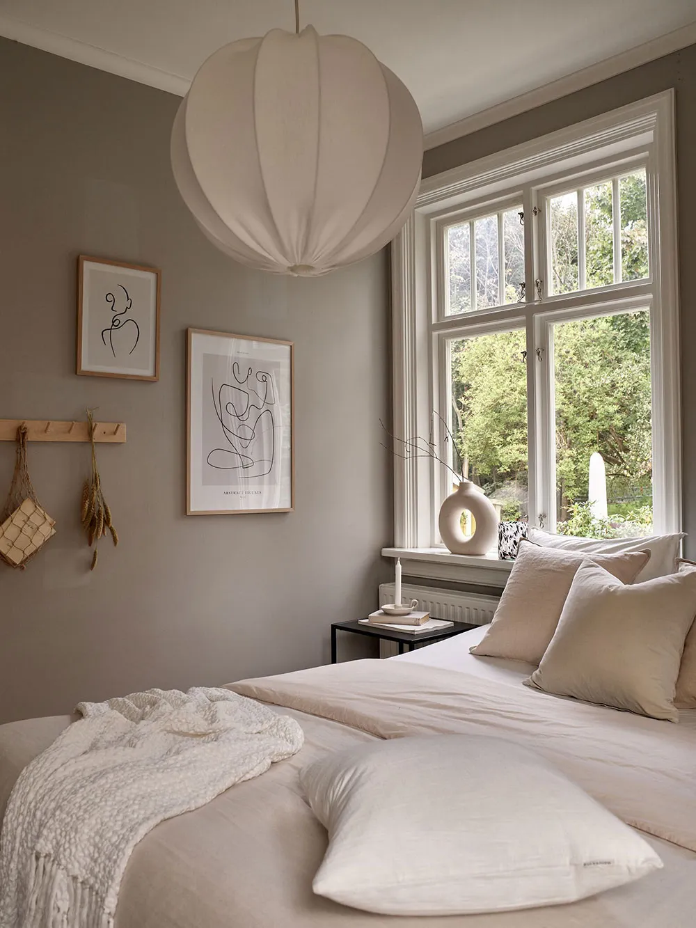 Interior beige suave en apartamento de estilo rústico en casa de campo sueca