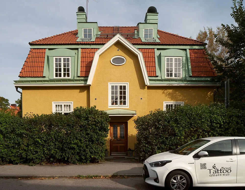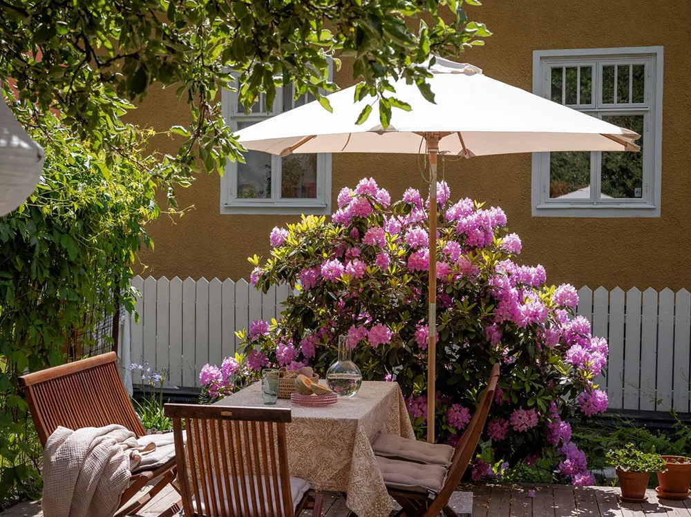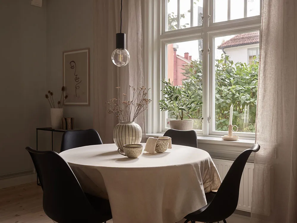La decoración del entorno y el ambiente exterior parecen no corresponder completamente con los interiores de esta vivienda en las afueras tranquilas de Estocolmo.
