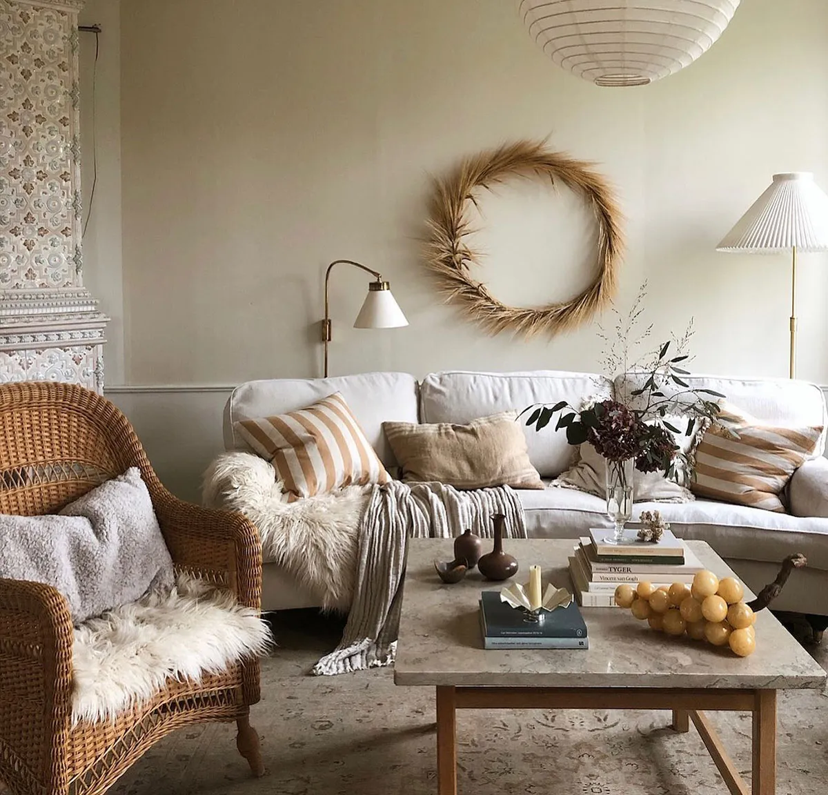 Mar de acogedora en los interiores de un cómodo coto sueco