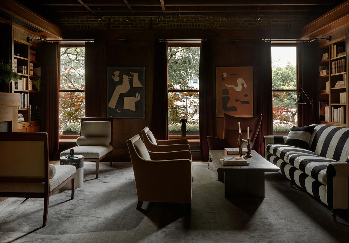 Segundo luz y biblioteca atmosférica: townhouse de familia joven en Nueva York