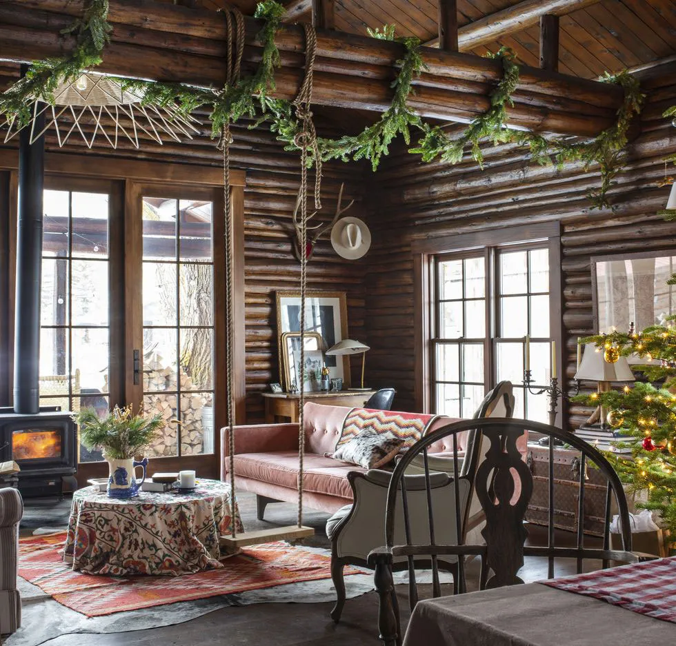 Festividades invernales en un acogedor cabaña de madera en Wyoming