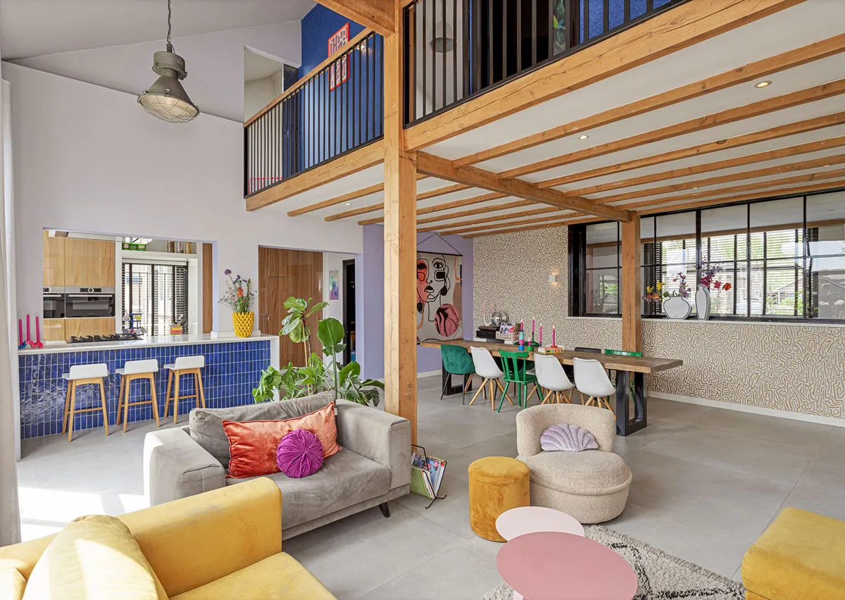 Diseño de interior colorido y vibrante en edificio ex-escuela en Países Bajos