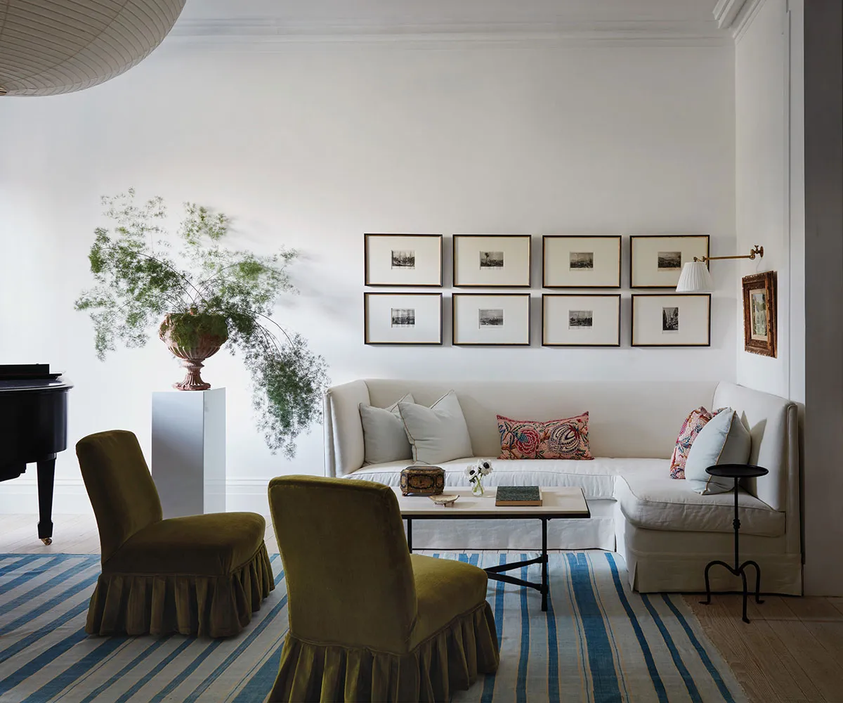 Aunque esta casa junto al lago Ontario pertenece al diseñador Lindsay Mens, la anfitriona no decidió convertirla en un lugar para experimentos decorativos atrevidos ni muebles extravagantes.