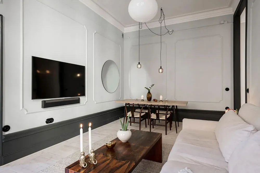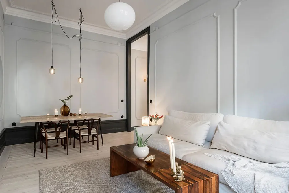 Molduras y contrastes: estilo de apartamento en Estocolmo (61 m²)