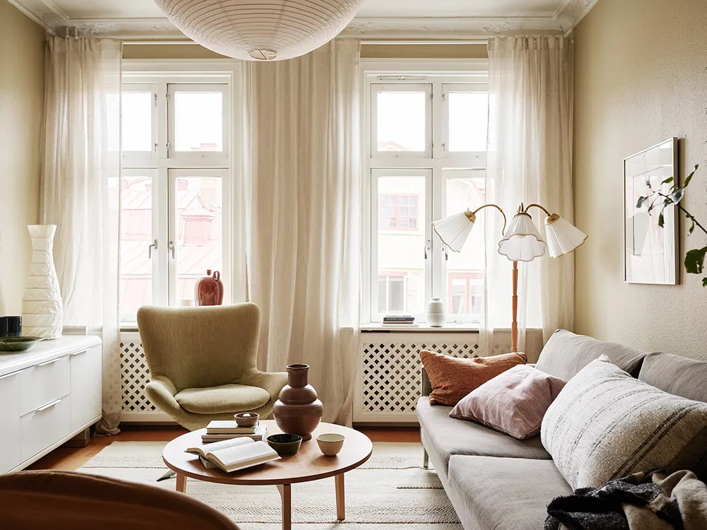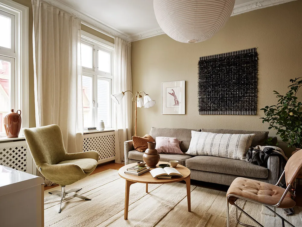 Interior escandinavo cálido con notas naturales agradables en el diseño