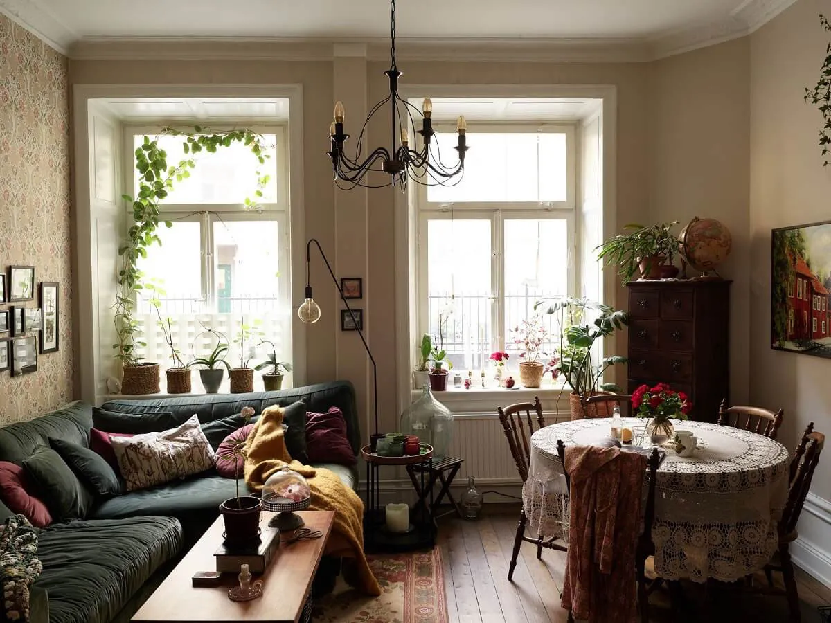 Interior vintage acogedor de apartamento en Estocolmo