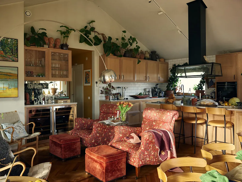 Abundancia de decoración e interesante jardín: una casa rural poco común en Suecia