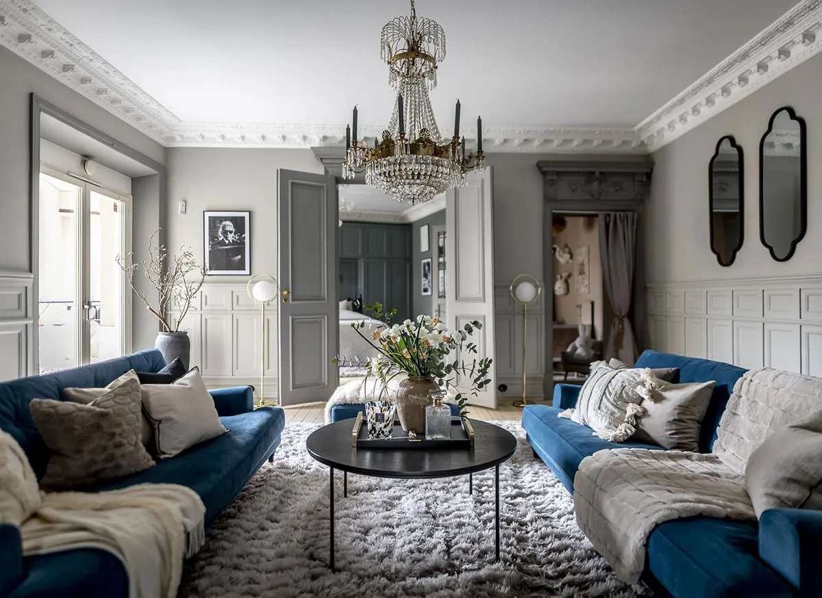 Belleza del decorado mural clásico en el diseño de un apartamento escandinavo